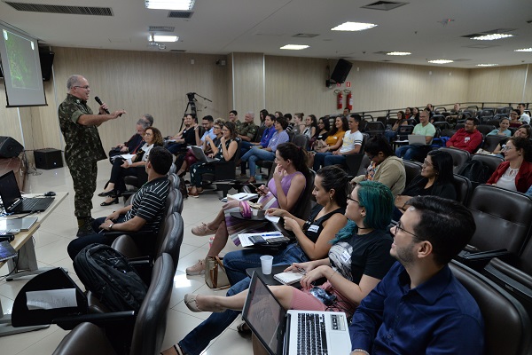 A seguir, o comandante da 17ª Brigada de Infantaria de Selva (BIS), general José Eduardo Leal de Oliveira, fez a palestra “Combatente de Selva: Elo fundamental entre a preservação e a soberania da Amazônia”, na qual apresentou, sob a ótica do ordenamento jurídico, a missão e o papel da 17ª BIS na defesa e na segurança da Amazônia Ocidental. Ele enumerou os comandos militares de área e as leis que normatizam o emprego das forças armadas no Brasil, como a que delimita a faixa de fronteira terrestre, de 150 km e que abrange 588 municípios em onze estados. Nessa faixa, o exército tem poder de polícia e pode atuar no patrulhamento, revista de pessoas e veículos e prisões em flagrante. “É uma das nossas principais atividades em Rondônia e, por ser um ambiente operacional complexo e diversificado devido à cobertura vegetal densa, as operações são feitas em parceria com outros órgãos, em uma complementaridade de capacidades”, diz o general.