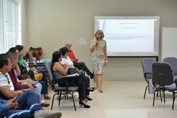 No segundo dia, Patrícia realizou um círculo restaurativo completo, de diálogo de conhecimento, para que os cursistas entendessem a técnica e o poder da prática restaurativa. “A gente não entende a justiça restaurativa em livro, entende vivenciando, então em cima do que eles estão pensando de gestão de sistema, conhecendo as técnicas, vão poder fazer propostas de implantação nos seus municípios e locais de trabalho”, afirma. Ela chama a atenção ainda para o olhar interno que é necessário inicialmente: “Qualquer método de solução pacífica de conflito demanda que você se modifique primeiramente, entendendo o grau de embrutecimento diante da violência e a perda da capacidade de se indignar. Se eu não me reavaliar e encontrar em mim aquele afeto que todo ser humano tem, não posso fazer essa proposta para o outro”.