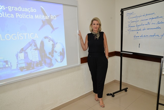 Elaine, titular da mesma disciplina em outra pós-graduação da Emeron, apresentou os conceitos básicos da matéria e informações específicas para contribuir na busca de soluções e respostas para as dificuldades e desafios que a PMRO possa vir a enfrentar com políticas de suprimentos, distribuição, serviços e todos os insumos necessários à prestação dos serviços institucionais. O objetivo é que os pós-graduandos sejam capazes de gerir as atividades de logística e patrimônio de forma organizada, processual e produtiva, com uma visão sistêmica e integrada do serviço público.