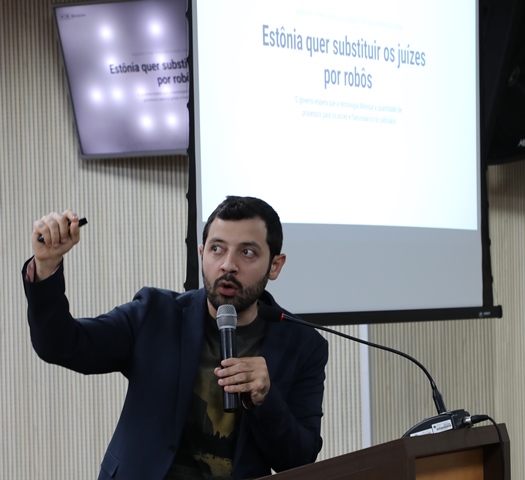 O professor assistente da Universidade Federal de Rondônia – UNIR, Diego de Paiva Vasconcelos, foi o orador seguinte, destacando a “Inteligência Artificial nos processos judiciais: Onde realmente estamos”. Dentre os questionamentos apresentados para a reflexão está a segurança de julgamentos feitos por máquinas, uma vez que há sempre nesse ato, um viés moral. “É seguro a Inteligência Artificial julgar um recurso repetitivo?”, instigou.
