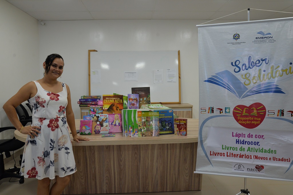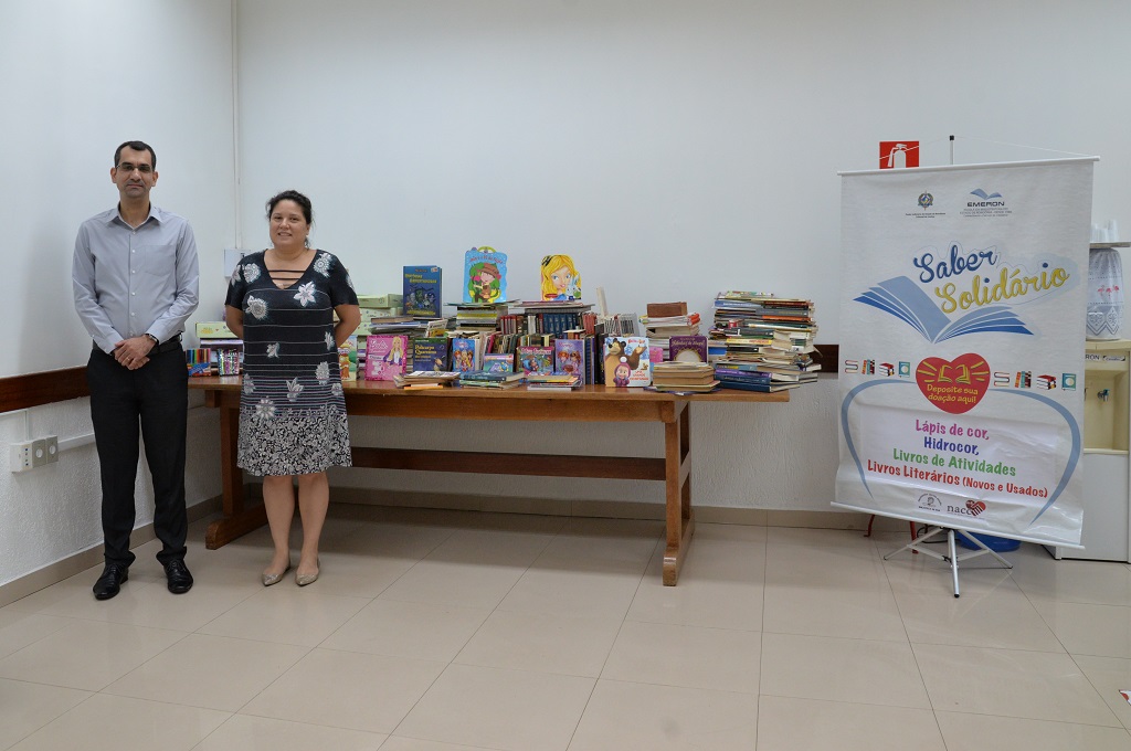 A Escola da Magistratura do Estado de Rondônia (Emeron) entregou esta semana as doações arrecadadas na campanha Saber Solidário, promovida desde o mês de setembro com o intuito de arrecadar livros e materiais escolares para a Biblioteca de Rua Professora Jacyra Marão e o Espaço de leitura do Núcleo de Apoio a Crianças com Câncer em Porto Velho – NAAC. Ao longo dos quase três meses de campanha foram arrecadados mais de 530 livros, doados por magistrados e servidores do Poder Judiciário de Rondônia, que serão divididos entre as duas entidades.