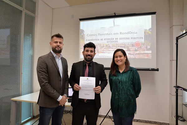 Na última quarta-feira, 11, o aluno Julio Cesar Ferreira defendeu o trabalho “Crimes Florestais em Rondônia: Diagnóstico da atuação do sistema punitivo estadual”, orientado pela professora doutora Carolina Watanabe e com Rodolfo Jacarandá e Pedro Colaneri (membro externo) na banca, o último participando por chamada de vídeo. O objetivo da pesquisa foi realizar um diagnóstico quanto ao crime florestal em Rondônia, para suporte ao desenvolvimento de políticas públicas e desenvolvimento da justiça.
