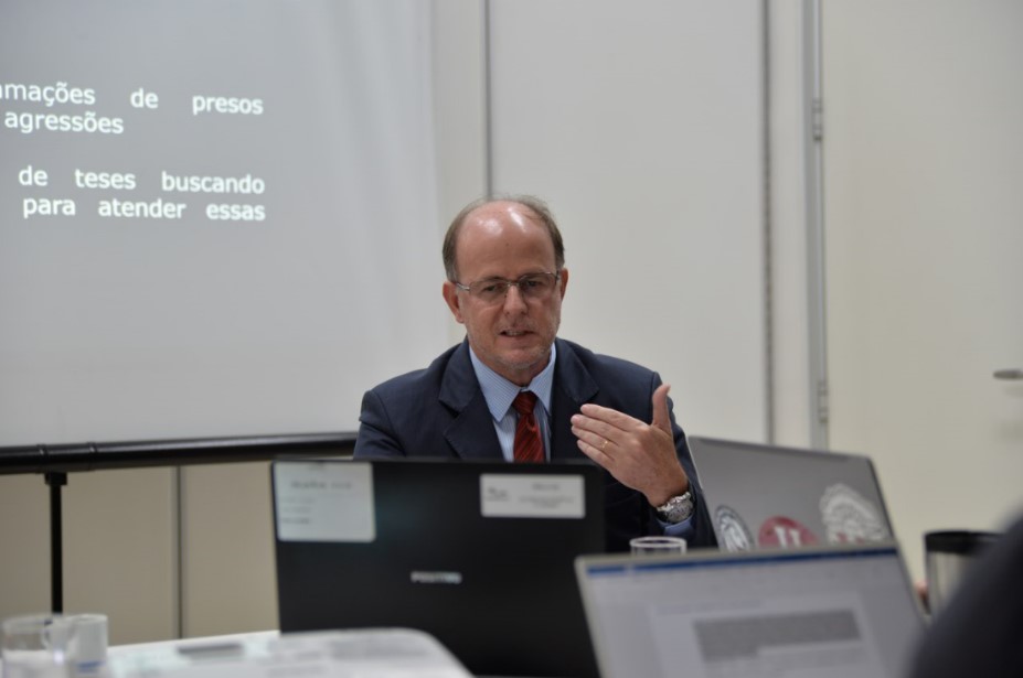 O desembargador José Antônio Robles durante sua banca de qualificação, em fevereiro