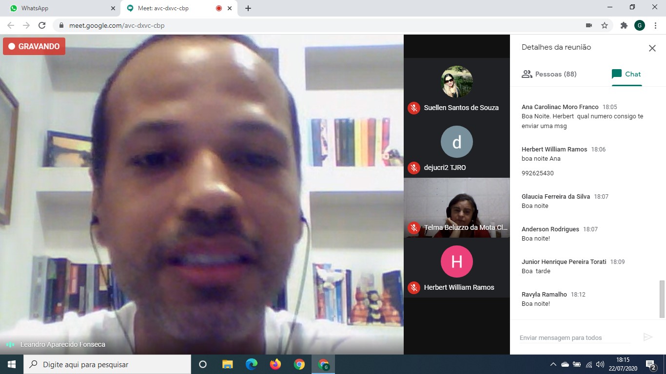 Em sua fala inicial, Leandro agradeceu a possibilidade de propor a ação educacional aos colegas e demais interessados no tema, por meio da instrução nº 2/2020, publicada em junho pela Emeron: “Esse encontro foi proporcionado primeiro a partir da criatividade e generosidade da Escola, que oportunizou que nós servidores elaborássemos esses webinários, então muito obrigado à Emeron e ao TJRO pela chance de levarmos esses conhecimentos”.