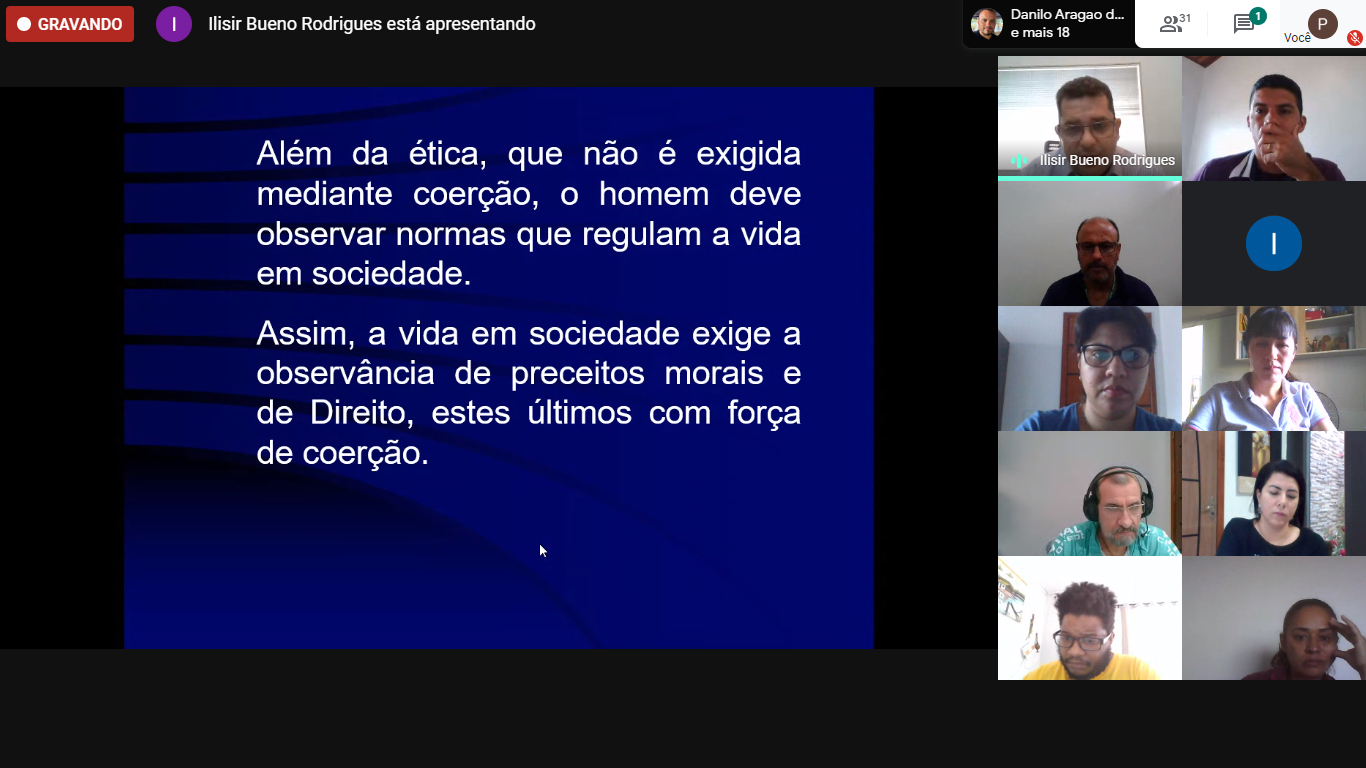 Foram apresentadas teorias e correntes filosóficas, como de Aristóteles e Kant, para desenvolver a consciência crítica sobre a atuação ética dos agentes do Estado, de forma que os alunos possam avaliar e escolher as condutas mais adequadas nas diversas situações profissionais. “Foi o primeiro módulo da pós-graduação em ambiente virtual, devido à pandemia, e imaginei que poderia ser cansativo, mas não foi, sobretudo pelo tema discutido e a forma como o professor explanou o conteúdo”, conta Moacir Santos, do cartório distribuidor do fórum de Machadinho d’Oeste.