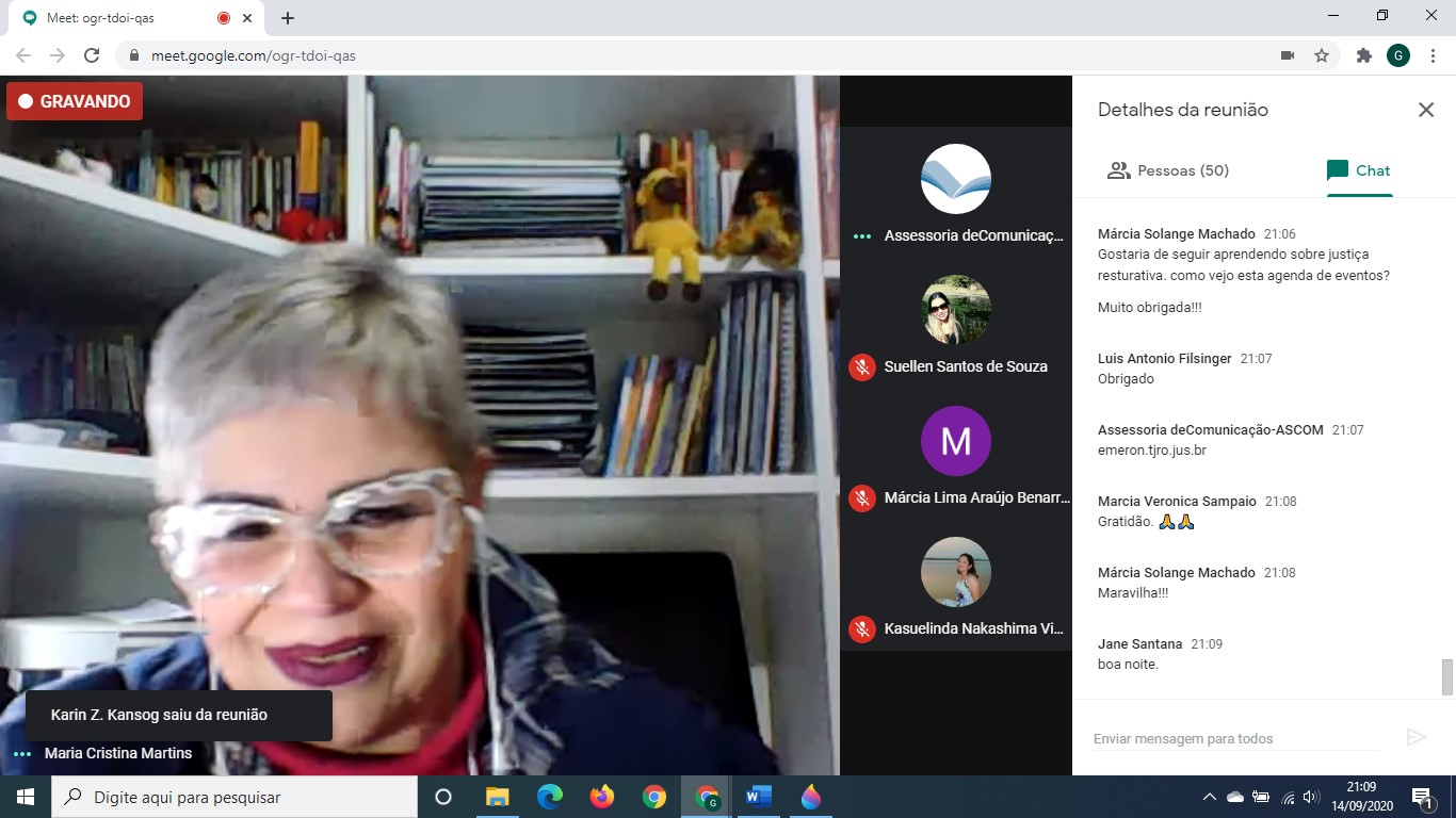 Na última quarta-feira, 16, o fórum sobre penas alternativas reuniu, também pelo Google Meet, quatro servidores e um magistrado do Tribunal de Justiça de Rondônia. Mediado por Ana Paula Baldez Santos, assistente social da Vara de Execução de Penas e Medidas Alternativas (Vepema), o encontro foi, novamente em sua 5ª edição, direcionado às instituições parceiras da Vepema, além de componentes da Central de Penas Alternativas da Secretaria de Estado da Justiça (Sejus), membros do Ministério Público e da Defensoria Pública.