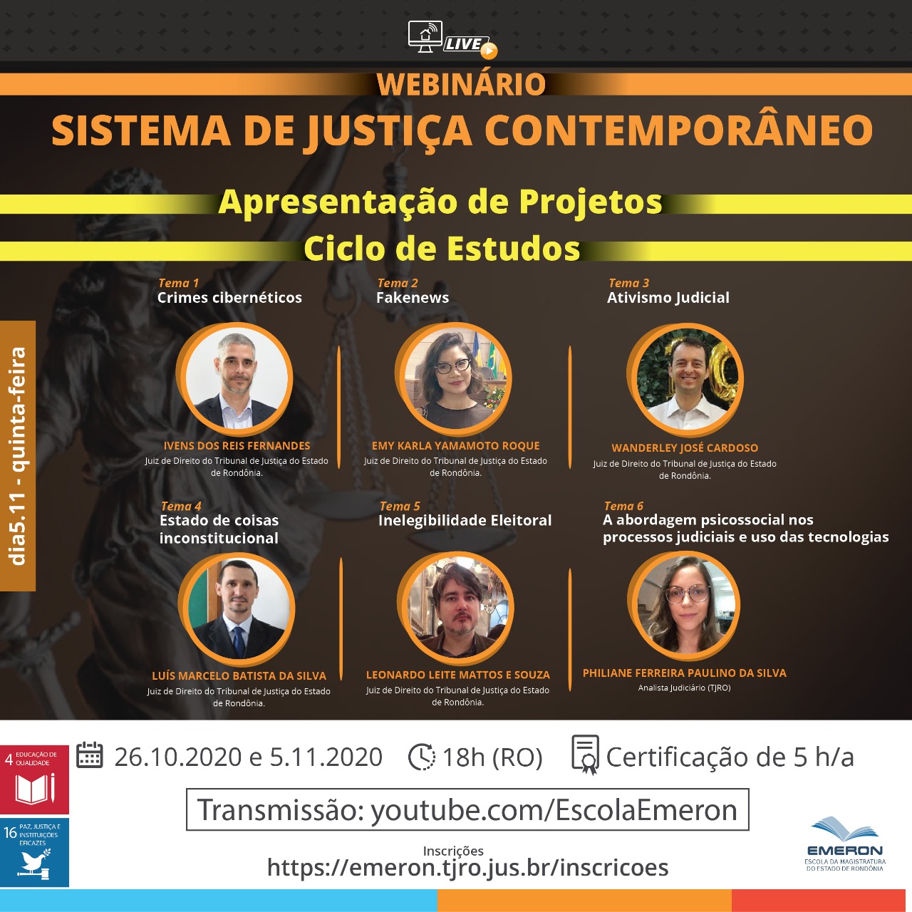 O Núcleo Pedagógico (Nuped-Jipa) da Escola da Magistratura do Estado de Rondônia (Emeron) em Ji-Paraná promoveu, na noite do último dia 26 de outubro, a primeira parte do Webinário Sistema de Justiça Contemporâneo. A segunda parte do evento está agendada para o dia 5 de novembro, às 18h (horário de Rondônia), também com transmissão ao vivo pelo Youtube (youtube.com/EscolaEmeron).