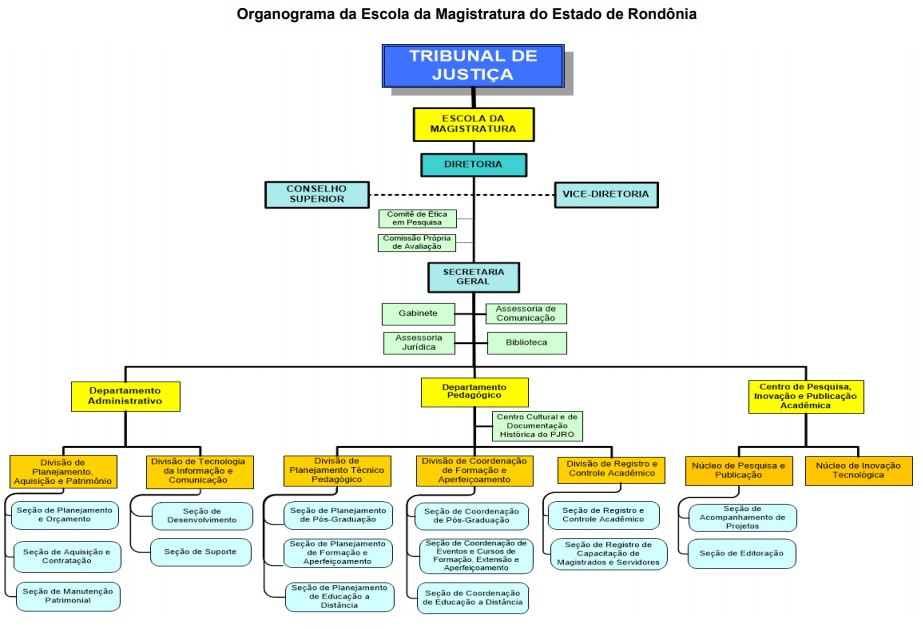 O Estatuto, que estabelece as regras de organização e funcionamento da Escola, foi substituído por uma versão alinhada à nova estrutura. A Resolução n. 174/2020-TJRO apresenta a atualização das funções das unidades componentes da Escola, conforme a nova estruturação; e as diretrizes para o exercício dos recém-criados Comitê de Ética em Pesquisa (CEP) e a Comissão Própria de Avaliação (CPA).
