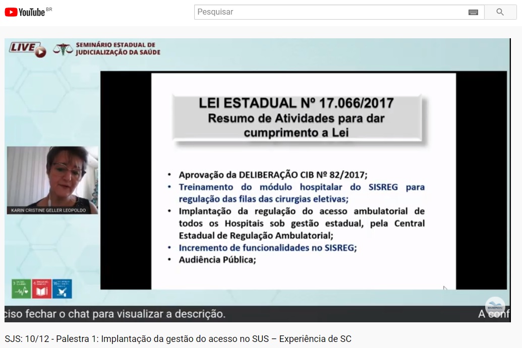 No evento, que teve 2 mil visualizações, também foram expostas boas práticas já instauradas, como a experiência de Santa Catarina no processo de implantação da gestão do acesso no Sistema Único de Saúde (Sus), apresentada pela Secretária de Saúde de São João Batista/SC, Karin Leopoldo; além dos panoramas de saúde nos municípios e estado de Rondônia, que contaram com a participação de representantes das secretarias de saúde.