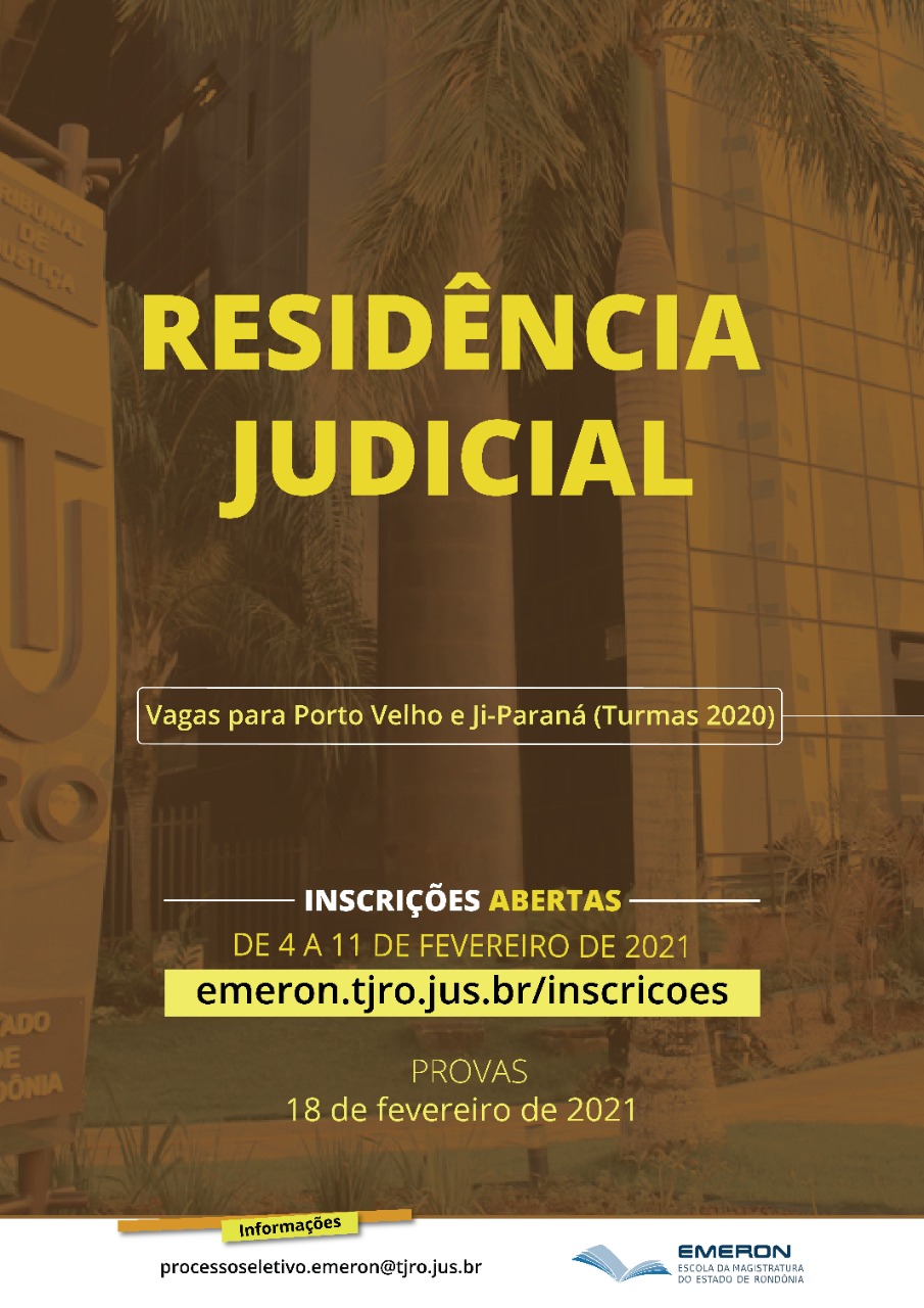 Todas as informações sobre a Residência Judicial e seu processo seletivo podem ser consultadas no edital Nº 2/2021-EMERON.