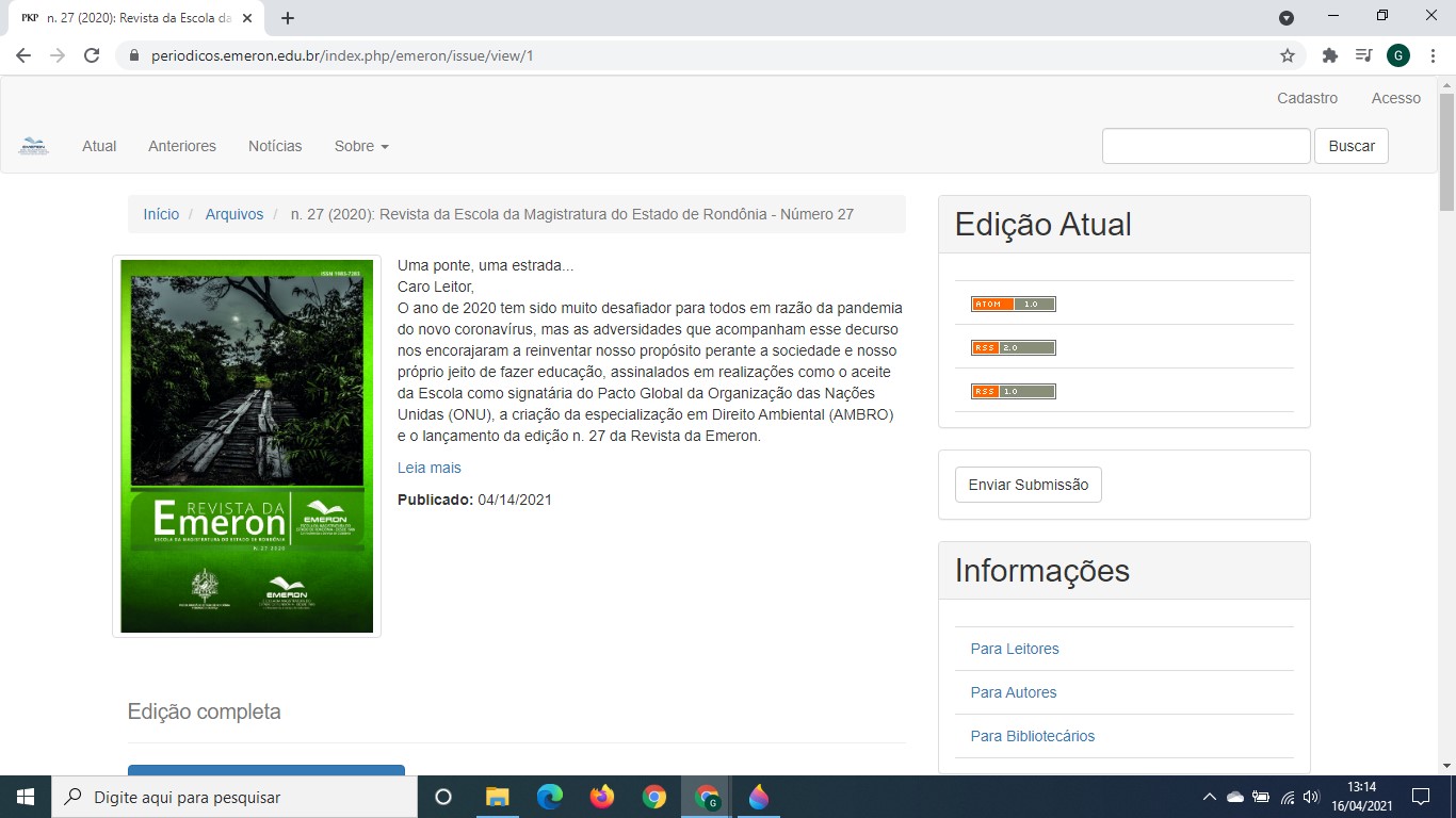 No fim da live, foi divulgado o link do novo site de publicações do Cepep (periodicos.emeron.edu.br), onde constam edições anteriores da Revista da Emeron, bem como os editais de chamadas de artigos abertos para os periódicos da Escola. A live está disponível permanentemente no YouTube da Emeron, para visualizações posteriores.