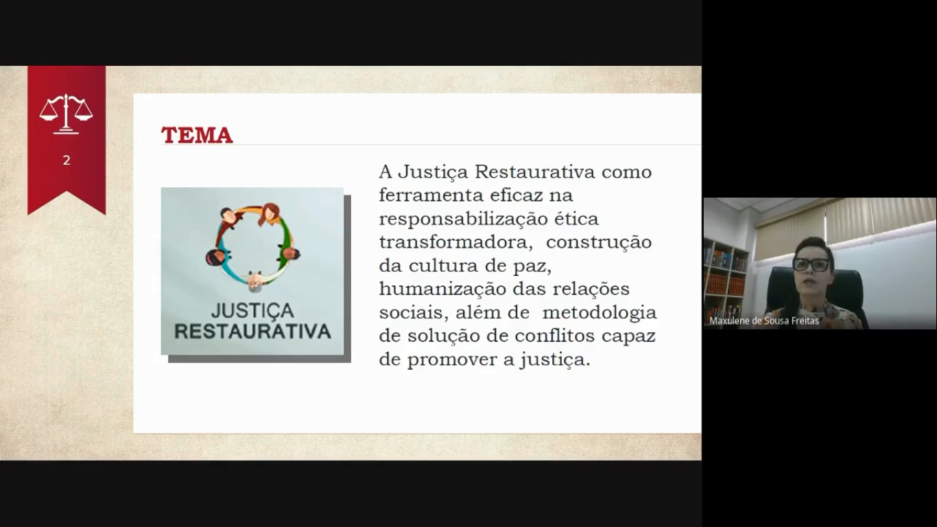 Em março, aconteceram outras três defesas. No dia 16, a juíza Maxulene Freitas, da 2ª Vara Cível da Comarca de Jaru, defendeu a dissertação “Justiça Restaurativa como Metodologia para a Pacificação Social e Humanização das Relações no Âmbito do Tribunal de Justiça do Estado de Rondônia”. Sob orientação da professora doutora Aparecida Zuin, o trabalho teve por objetivo conduzir à reflexão sobre a Justiça Restaurativa como metodologia eficaz no campo da responsabilidade transformativa, operando a restauração pacífica das relações sociais e promovendo a realização do valor justiça. “A utilização desta metodologia como forma de solução de conflitos e de pacificação social é o melhor caminho para a democracia, a fim de ampliar e dar maior efetividade ao acesso à Justiça”, explica a magistrada.