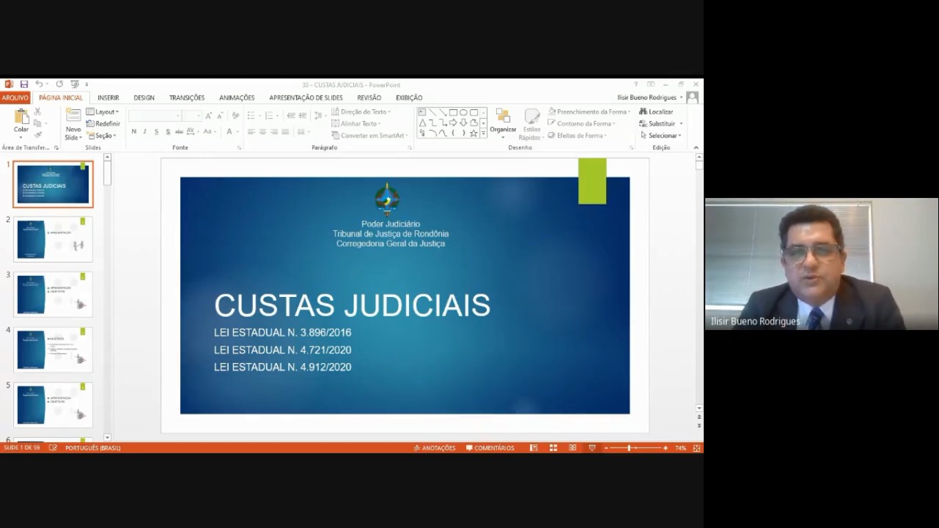 Mestre em Direitos Humanos e Desenvolvimento da Justiça pela Universidade Federal de Rondônia (Unir), em parceria com a Emeron, onde é professor de Deontologia e Hermenêutica Jurídica da Especialização em Direito para a Carreira da Magistratura (EDCM), Ilisir diz que o curso teve por objetivo padronizar a aplicação da Lei de Custas no âmbito do primeiro grau de jurisdição do PJRO. “Além do Regimento de Custas (Lei Estadual n. 3.896/2016), foram tratadas as Leis Estaduais n. 4.721/2020 (que autorizou o parcelamento das custas) e 4.912/2020, que determina a cobrança de custas de citação e intimação das empresas públicas e privadas não cadastradas no Processo Judicial eletrônico”, explica o magistrado.