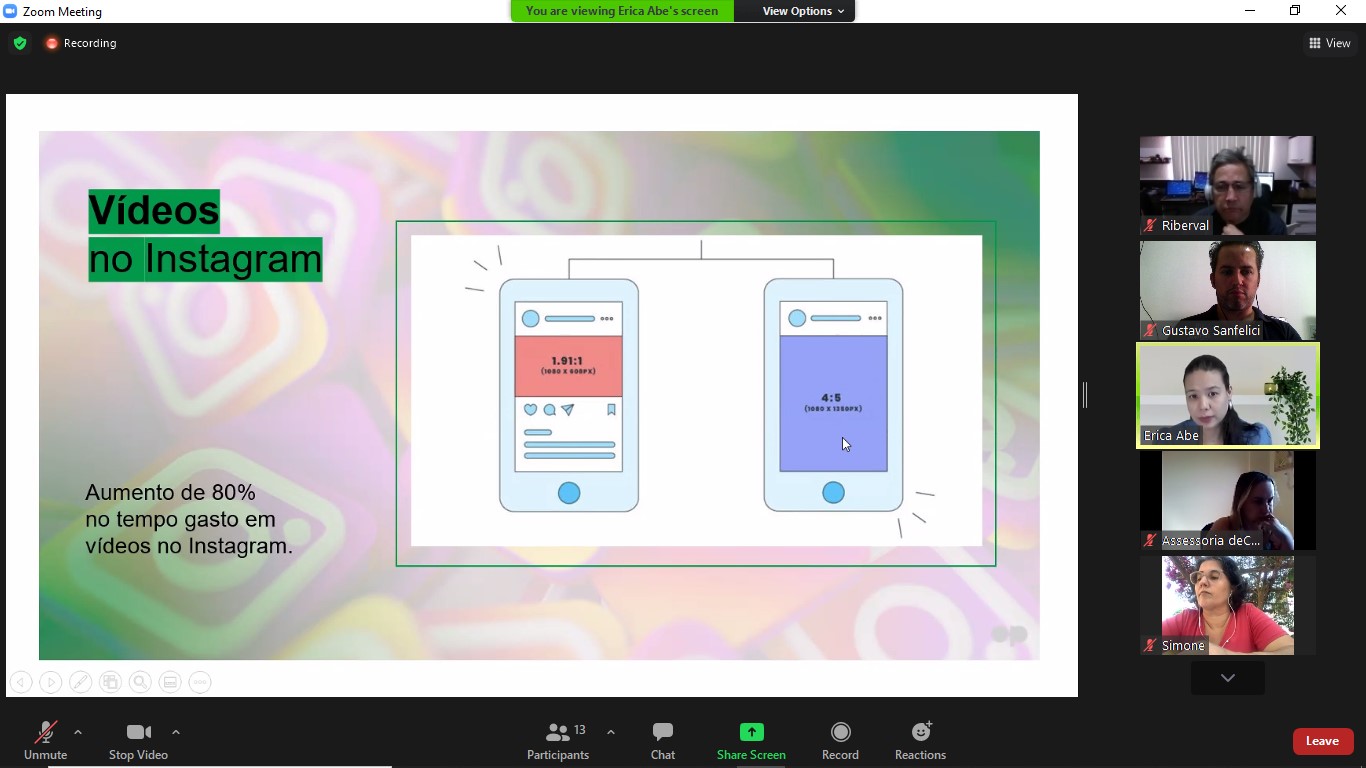 Outra questão abordada foi sobre os vídeos serem o que tem mais acesso hoje em todas as plataformas. “Também estou cobrando isso muito mais da nossa equipe, a gente faz projeto, faz ações e como regra só fazia postagem, matéria para o Instagram e encaminhava nos grupos de WhatsApp, agora estou fazendo o movimento de que todo mundo faça vídeo para reforçar a divulgação dos projetos, para a gente melhorar a nossa comunicação e o alcance das nossas ações”, conclui a psicóloga.
