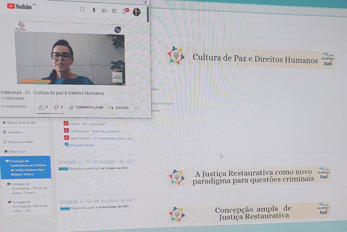 Entre o final de setembro e a semana passada, a Escola da Magistratura de Rondônia (Emeron) realizou duas formações na temática da justiça restaurativa. A primeira sensibilização, entre os dias 27 e 30, teve como público-alvo o público interno do Tribunal de Justiça do Estado com competência criminal e/ou infracional, e a segunda, de 4 a 18 de outubro, foi destinada a servidoras e servidores que atuarão como facilitadores em práticas de justiça restaurativa. Ambas as formações ocorreram na modalidade Educação a Distância (EaD), por meio do Ambiente Virtual de Aprendizagem (AVA) da Emeron.