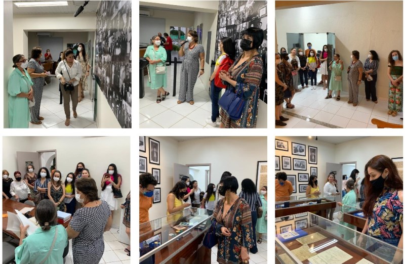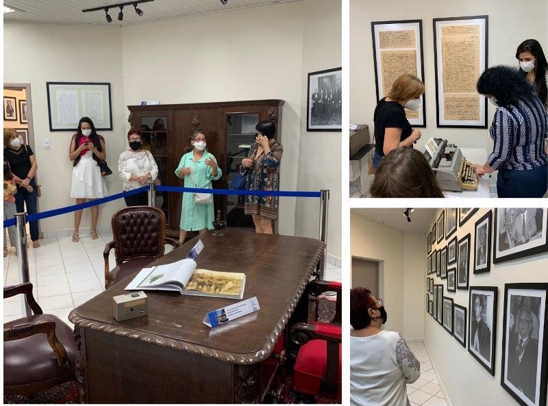 Na sala de exposição, fotos, documentos, atas, trechos de processos, mobiliários, medalhas, também despertaram o interesse do grupo, que ficou atento a cada detalhe apresentado pelas historiadoras. “Aqui nesta máquina, muitos de nós iniciamos nossa vida funcional”, destacou Cecileide Correia, ao comentar sobre equipamentos tais como máquina de escrever e um telégrafo.