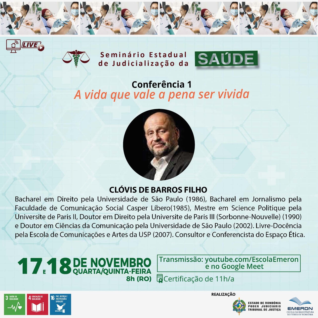 A 2ª edição do seminário abordará o tema “Saúde, Acessibilidade e Atendimento de Saúde Mental no Estado de Rondônia e no Município de Porto Velho”, com o foco na Estruturação e Integração das Instâncias para a garantia dos direitos dos cidadãos. Após a abertura oficial, que será feita pelos diretor e vice-diretor da Emeron, desembargador Miguel Monico Neto e juiz Edenir Albuquerque, acompanhados por representantes das Secretarias Estadual e Municipal da Assistência Social, a primeira conferência será com o renomado palestrante Clóvis de Barros Filho, intitulada “A vida que vale a pena ser vivida”. Doutor em Direito pela Université de Paris III (Sorbonne-Nouvelle) e em Ciências da Comunicação pela Universidade de São Paulo, o filósofo e professor Clóvis de Barros é Livre-Docente pela Escola de Comunicações e Artes da USP, além de consultor e conferencista do Espaço Ética. Suas aulas e palestras já foram ouvidas por milhões de pessoas em todos os estados do Brasil e no Uruguai, França, México, Argentina, Espanha e Portugal, entre outros países.