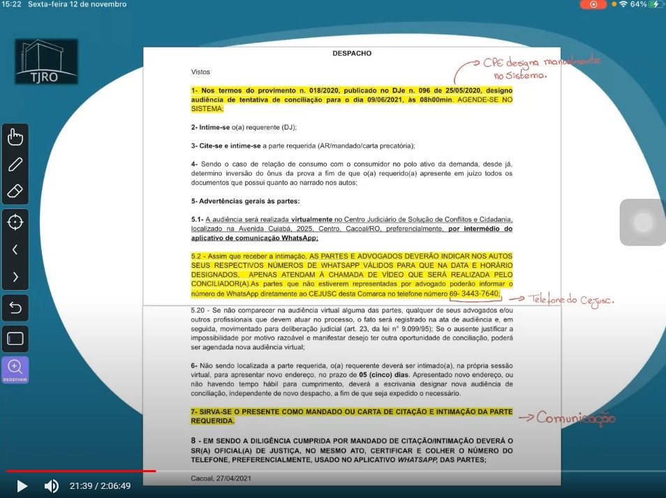 Os servidores e servidoras, incluindo secretário(a) de gabinete, assessores(as) e assistentes de juiz, foram divididos em três eixos, de acordo com a área de atuação: Juizado Especial Criminal, Cível (incluindo Vara de Família e Infância e Juventude, e Fazenda e Execução Fiscal) e Juizados Especiais (Cível e Fazenda Pública). Entre outubro e novembro, cada turma, composta por até 25 pessoas, teve aulas via webconferência com equipe da Secretaria Judiciária do 1º Grau, que apresentou os modelos e boas práticas adotados por outros juízos e que podem ser replicados nas demais unidades, bem como fluxos e procedimentos, com o intuito de padronizar o rito processual dos processos judiciais em trâmite no 1° Grau.