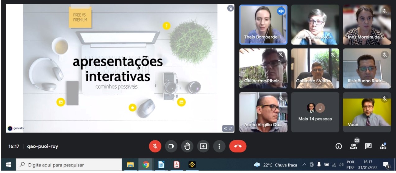 Thaís, que é formadora cadastrada na Escola Nacional de Formação e Aperfeiçoamento de Magistrados (Enfam), conta que foram revisitados temas tratados em oficinas anteriores, refletindo ainda sobre os aprendizados decorrentes da pandemia e da realidade que se apresenta. “Foi nítido o avanço em relação à oficina anterior quanto ao uso das ferramentas digitais, estando os docentes mais familiarizados e adaptados à realidade remota”, afirma a ministrante.