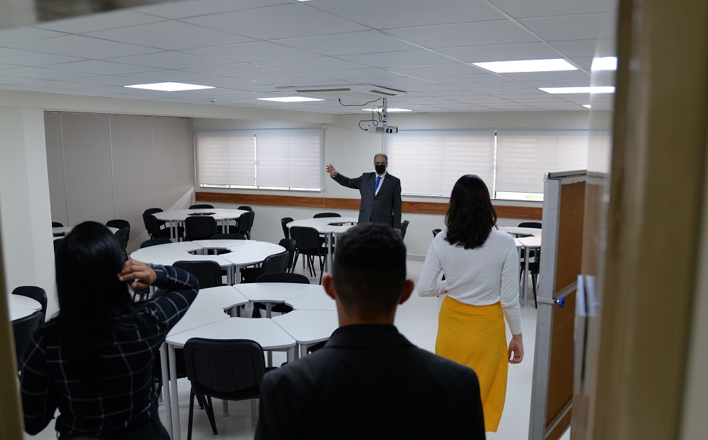 Em seguida foi realizada uma visitação à estrutura que será entregue nos próximos dias. Passando pelas salas de aula, laboratório e demais instalações pedagógicas, a direção explanou as possibilidades que cada espaço apresenta para as ações educacionais. A visita foi finalizada no Tribunal Pleno, local em que eram realizadas as sessões quando o prédio ainda abrigada a sede do Tribunal de Justiça de Rondônia e que foi completamente preservado na nova sede, inclusive passando por um processo de restauração.