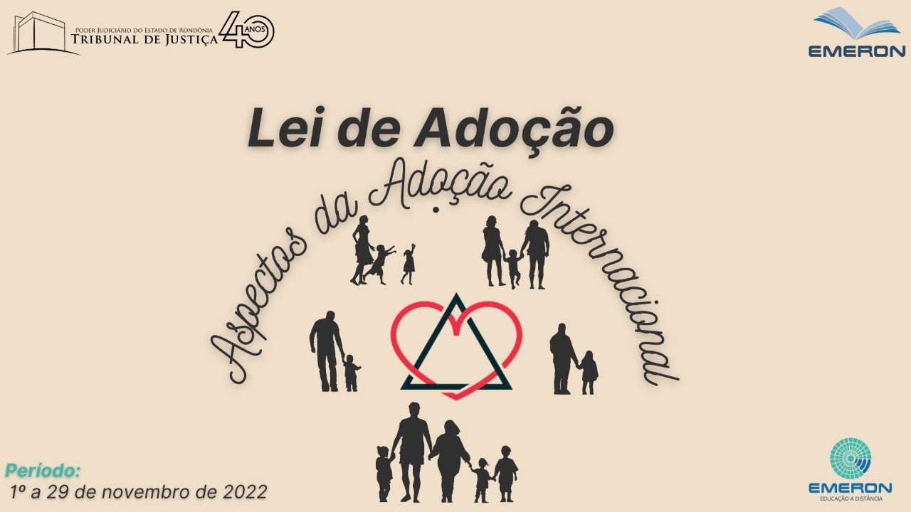 A Escola da Magistratura do Estado de Rondônia (Emeron) está com inscrições abertas a magistradas e magistrados, até o dia 10 de outubro, para o curso Lei de Adoção e Aspectos da Adoção Internacional, que será realizado na modalidade de Educação a Distância, pela plataforma Zoom, de 1º a 29 de novembro. As inscrições devem ser feitas pelo site da Escola (emeron.tjro.jus.br), por meio do menu Inscrições.