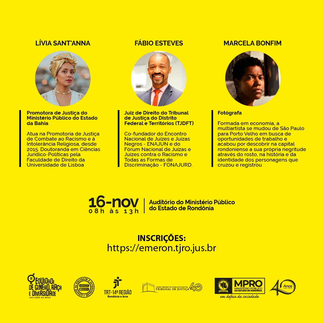 O Comitê Gestor da Política Interinstitucional de Equidade de Gênero, Raça e Diversidade, composto pelo Ministério Público de Rondônia, Tribunal de Justiça de Rondônia e Tribunal Regional do Trabalho da 14ª Região, promoverá no dia 16 de novembro de 2022, das 8h às 13h, o seminário “Racismo, Antirracismo e Políticas Institucionais”, alusivo ao Mês da Consciência Negra em Rondônia.