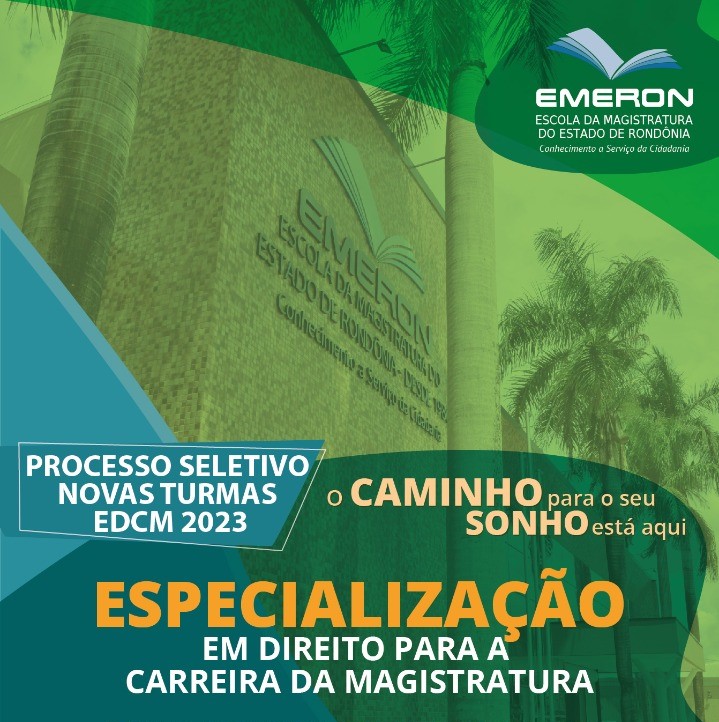 A Escola da Magistratura de Rondônia (Emeron) publicou, no Diário Eletrônico da Justiça Estadual desta terça-feira (3), o Edital 01/2023, que trata do processo seletivo para ingresso na Turma 2023/2024 da Especialização em Direito para a Carreira da Magistratura (EDCM), em Porto Velho e Cacoal. O curso de pós-graduação lato sensu destina-se a portadores(as) de diploma de graduação em Direito e conta com Política de Ações Afirmativas, com reserva de vagas para grupos minorizados e gratuidade nas inscrições e mensalidades.