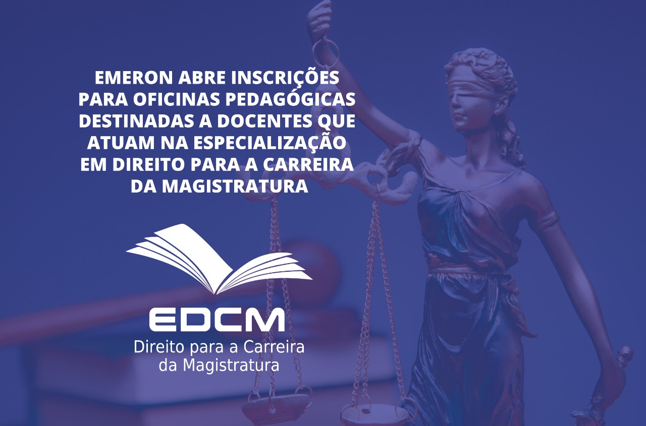 A Escola da Magistratura do Estado de Rondônia (Emeron) abriu nesta terça-feira, 17, as inscrições para as oficinas pedagógicas da Especialização em Direito para a Carreira da Magistratura (EDCM). A ação é destinada a servidores e magistrados(as) que atuam como docentes do curso.