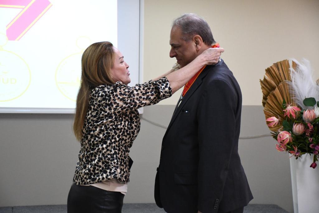 A Medalha do Mérito da Academia Judicial Desembargador Jorge Araken Faria da Silva foi entregue ao diretor da Emeron pela desembargadora Regina Ferrari em seu último dia à frente da direção da Esjud. “Surpresa maravilhosa, fiquei sem palavras. Minha ligação com o povo acreano é de longa data, aqui já estive em tantas frentes, inclusive me lembro quando fui trazido para ministrar aula pela desembargadora Eva”, disse Raduan Miguel.