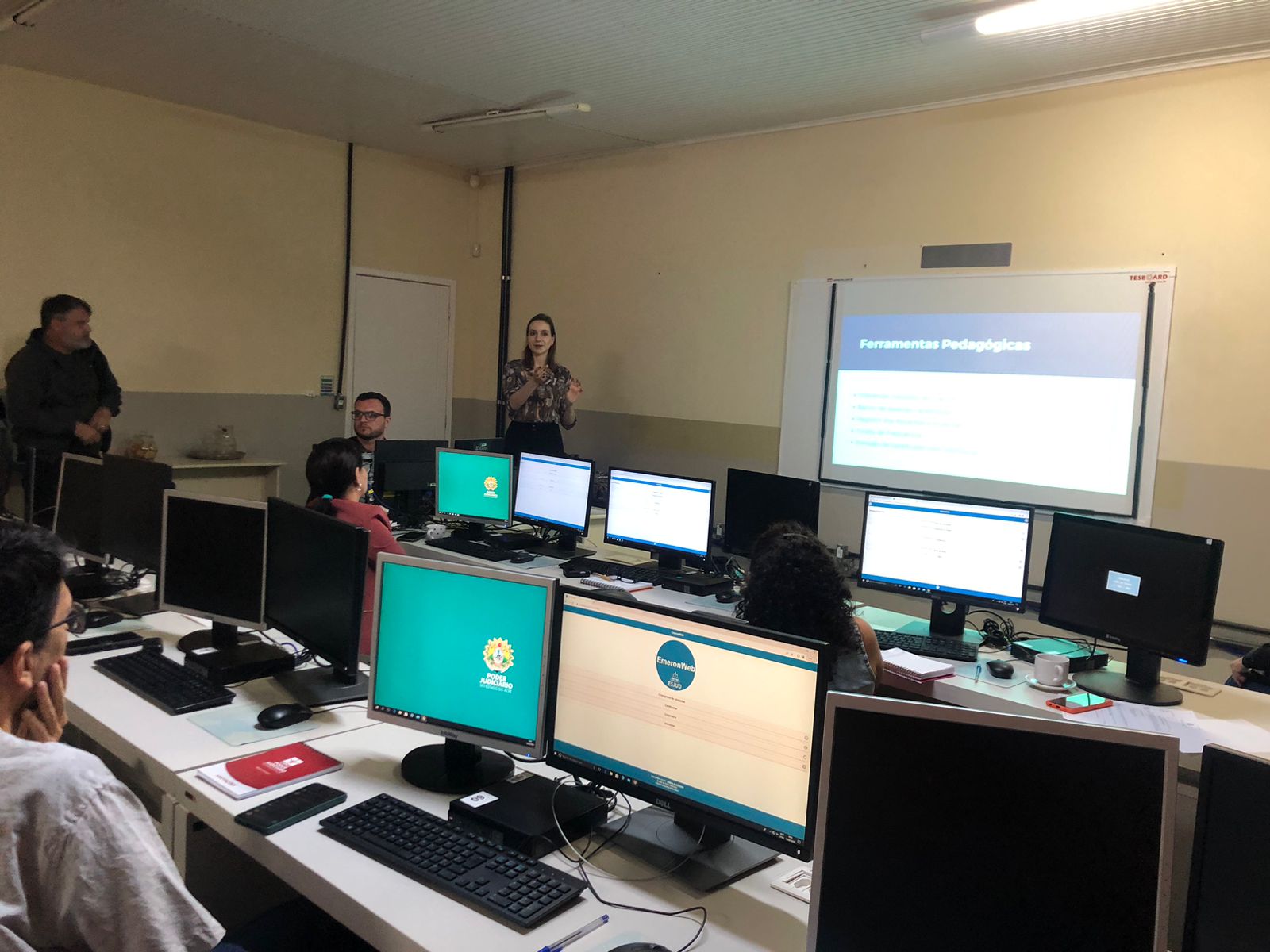 A equipe enviada pela Emeron a Rio Branco para ministrar o segundo módulo foi composta pelos servidores Herbert William, Thaís Bombardelli e Riberval Saraiva. Os três apresentaram as funcionalidades pedagógicas do sistema. O EmeronWeb foi todo desenvolvido na Escola da Magistratura rondoniense e está sendo compartilhado com a Esjud por meio de um termo de cessão.