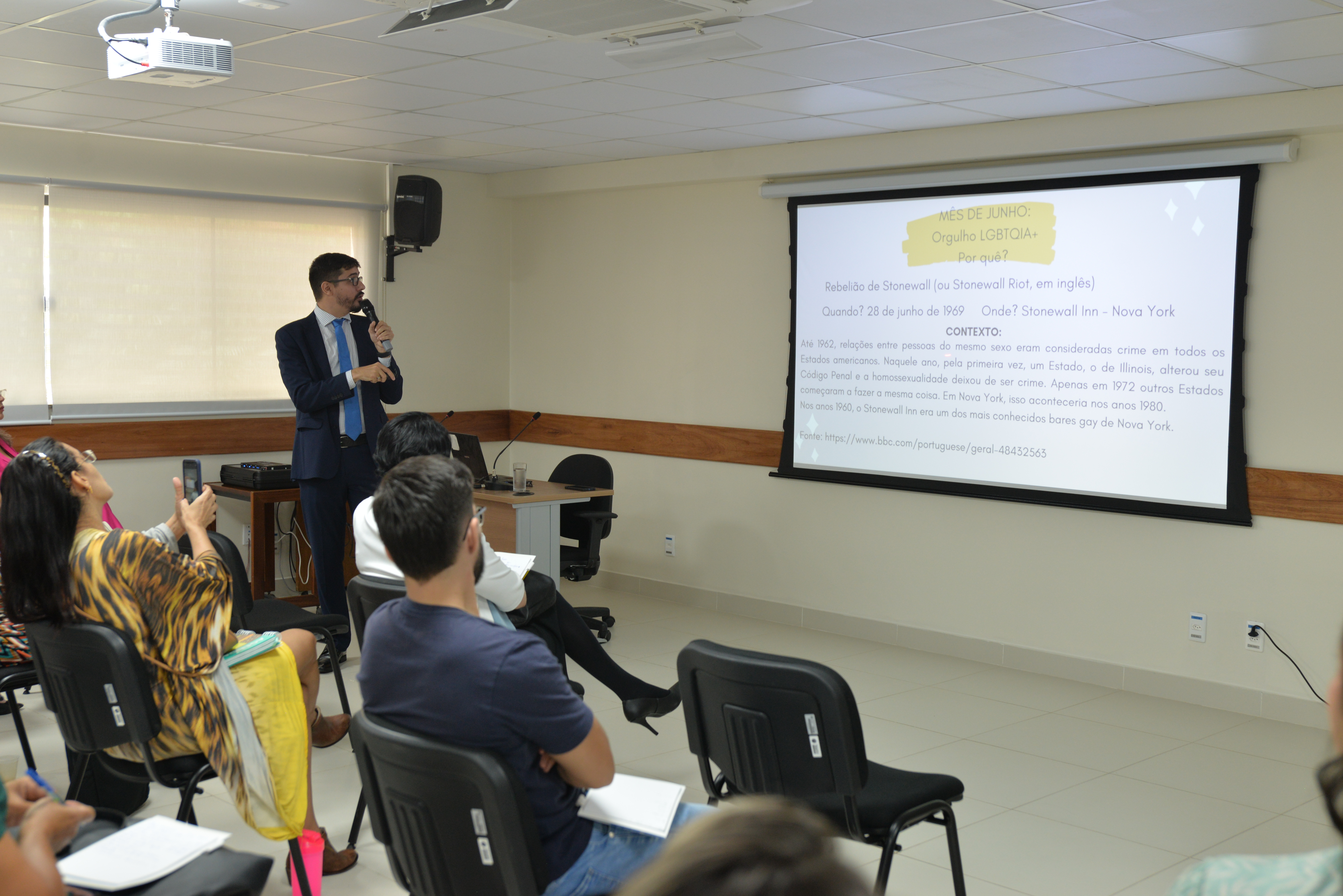 O encontro, que aconteceu em sala de aula na Emeron no dia 1° de março, reuniu cerca de 100 magistradas, servidores(as) e colaboradores terceirizados(as) que atuam em segurança e portaria, além de pessoas do público geral. Todas(os) tiveram a oportunidade de conhecer conceitos relacionados a gênero, orientação sexual e diversidade em geral. A diferença entre transexual, travesti e drag queen, nome civil e nome social e o significado das letras da sigla LGBTQIAP+ foram alguns dos tópicos abordados de forma didática.