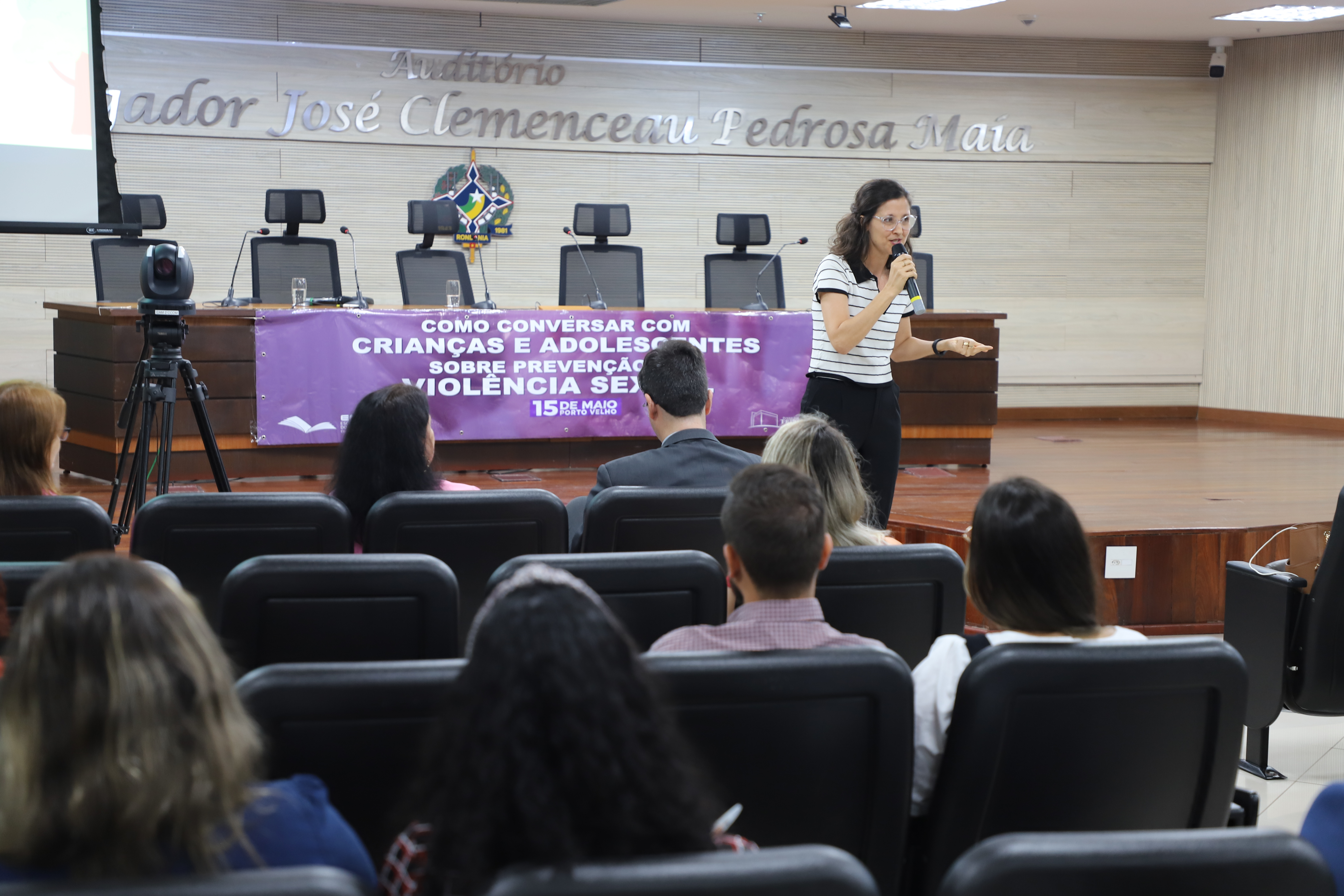 A Escola da Magistratura de Rondônia (Emeron) promoveu nesta segunda-feira, 15, a palestra “Como conversar com crianças e adolescentes sobre prevenção de violência sexual”, no auditório do edifício-sede do Tribunal de Justiça do Estado. O evento foi elaborado pela Vara de Proteção à Infância e Juventude de Porto Velho.