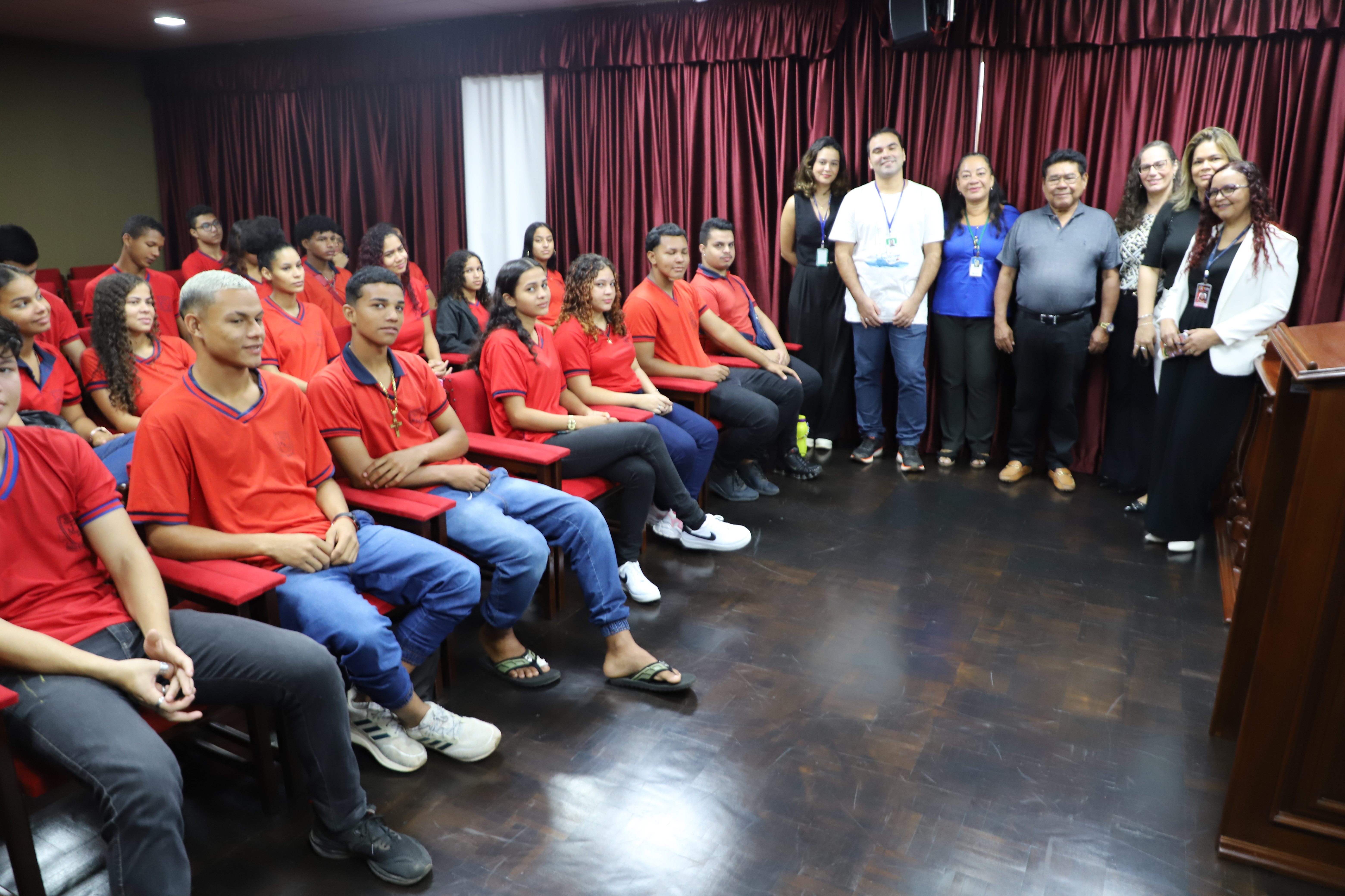 Na oportunidade, eles conheceram vários espaços da Escola, como o auditório, a biblioteca e o Pleno histórico preservado. A passagem do desembargador José James pela Emeron coincidiu com a visita de um grupo de estudantes no projeto “A Escola no Judiciário”. No Pleno histórico, a juíza Karina e o desembargador José James cumprimentaram os alunos e alunas da Escola Marcos de Barros Freire, da Zona Leste da capital.