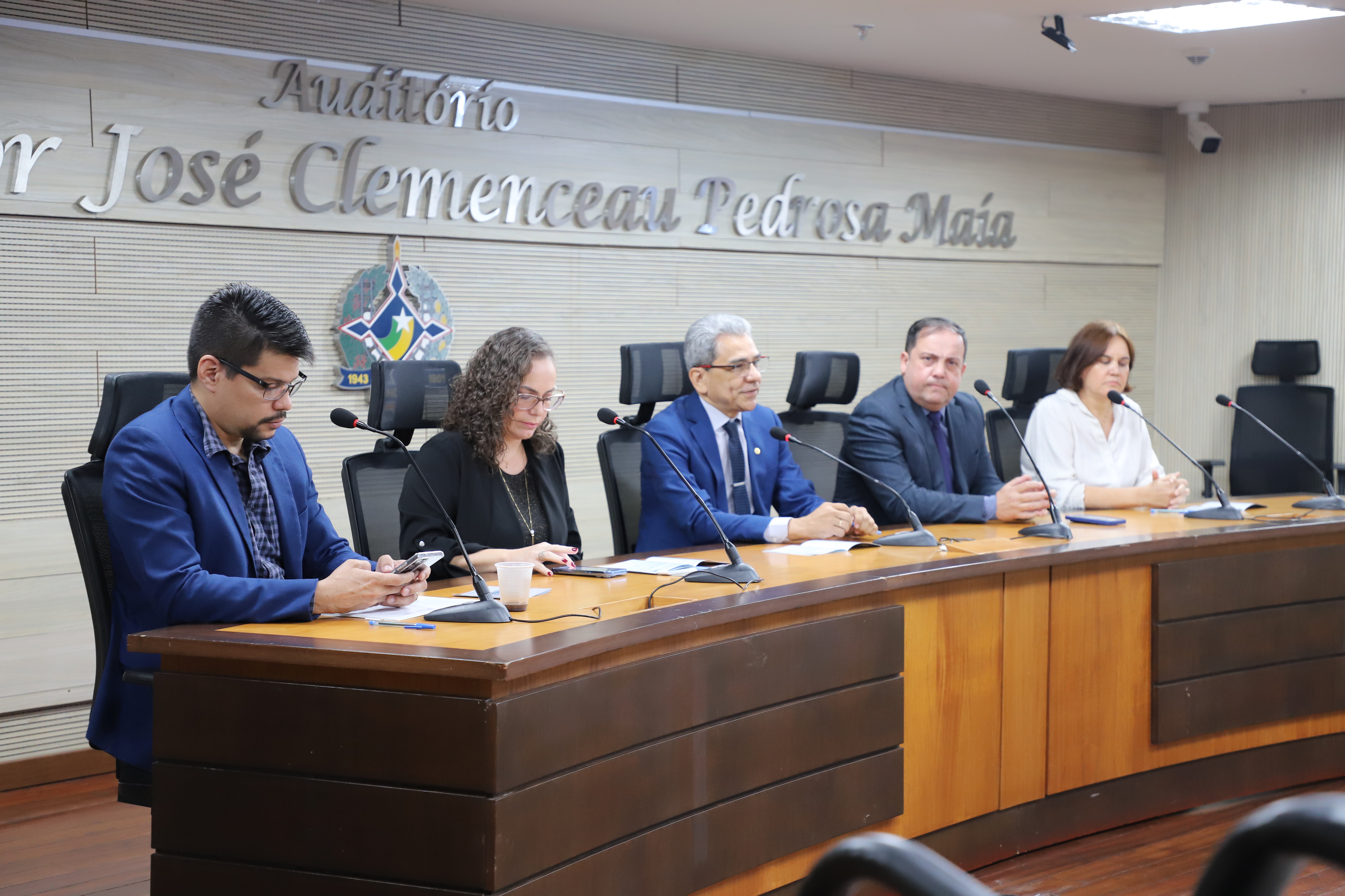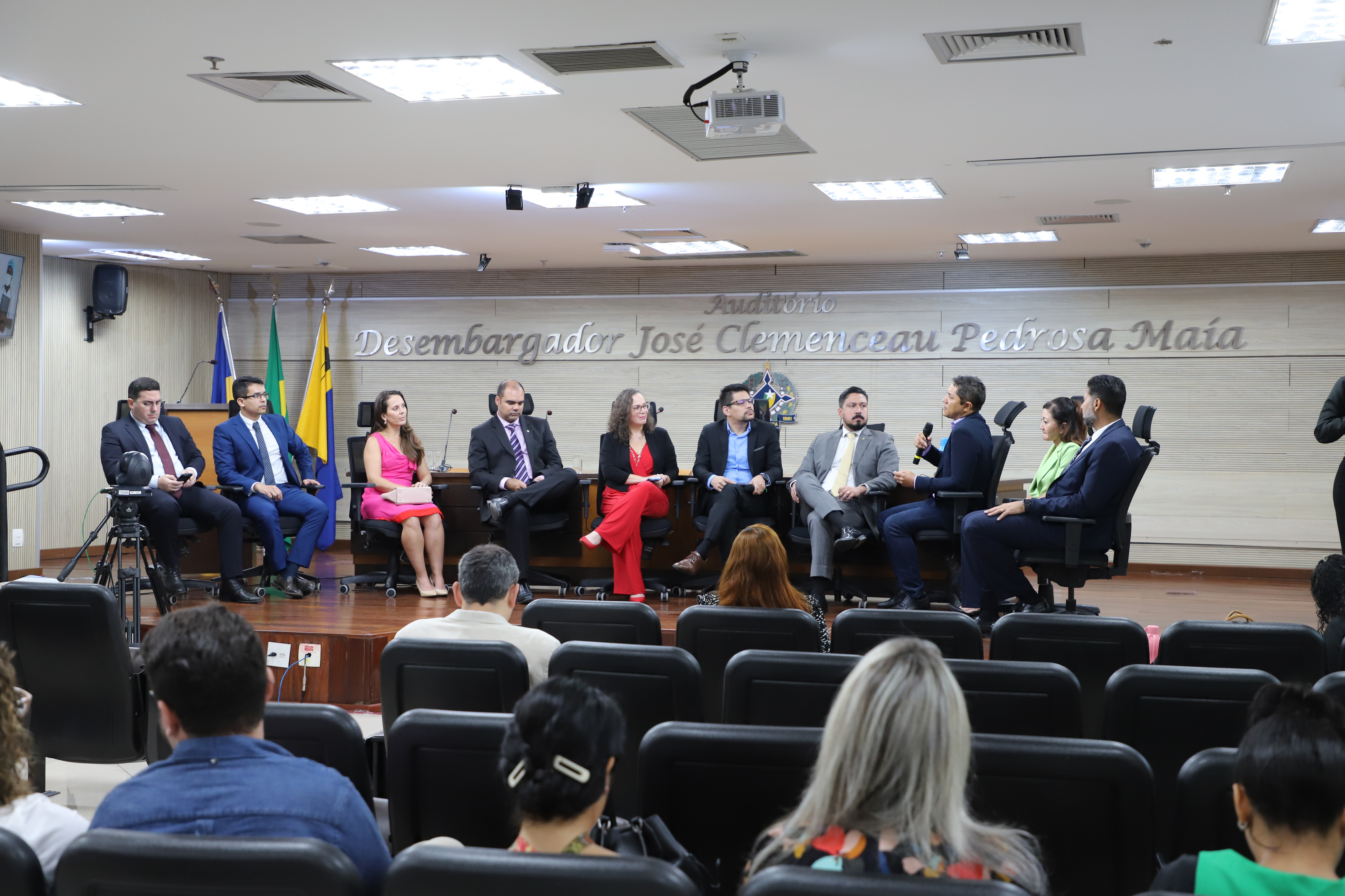 O juízes Edenir Sebastião e Karina Miguel Sobral mediaram o momento, que contou com a participação dos defensores públicos Bruno Balbé e Sérgio Muniz, secretário-adjunto da Sesau Maxwendell Gomes, advogado Alexandre Paiva, juíza Federal Jaqueline Conesuque, auditor do TCE Paulo Dias e os procuradores do Estado Pedro Leite e Ítalo Lima.