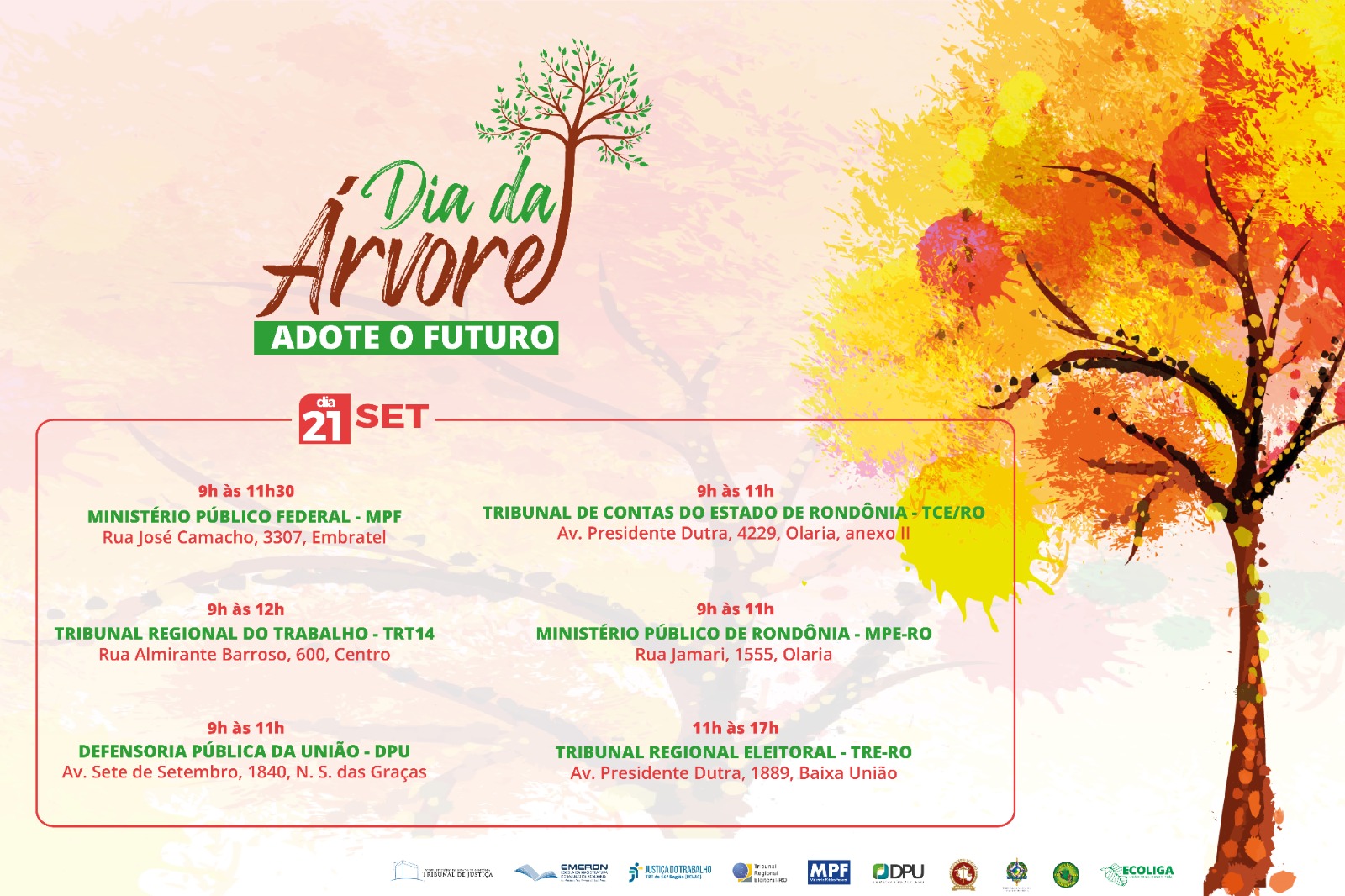 Nesta quinta e sexta-feira, 21 e 22 de setembro, sete órgãos públicos integrantes da Ecoliga de Rondônia terão distribuição de mudas de árvores amazônicas, durante a campanha “Adote o Futuro”. A ação é idealizada e coordenada pela Escola da Magistratura do Estado (Emeron), com apoio do Batalhão de Polícia Ambiental (BPA) da Polícia Militar de Rondônia.
