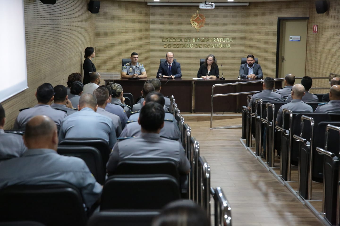 A abertura da nova pós-graduação da Emeron foi realizada pelo corregedor-geral da Justiça, desembargador José Antonio Robles, e pela juíza Karina Miguel Sobral, vice-diretora da Emeron. Participaram também o diretor executivo da Sesdec, coronel PM Paulo Henrique da Silva Barbosa, e o comandante-geral da PMRO, coronel Régis Wellington Braguin Silverio.
