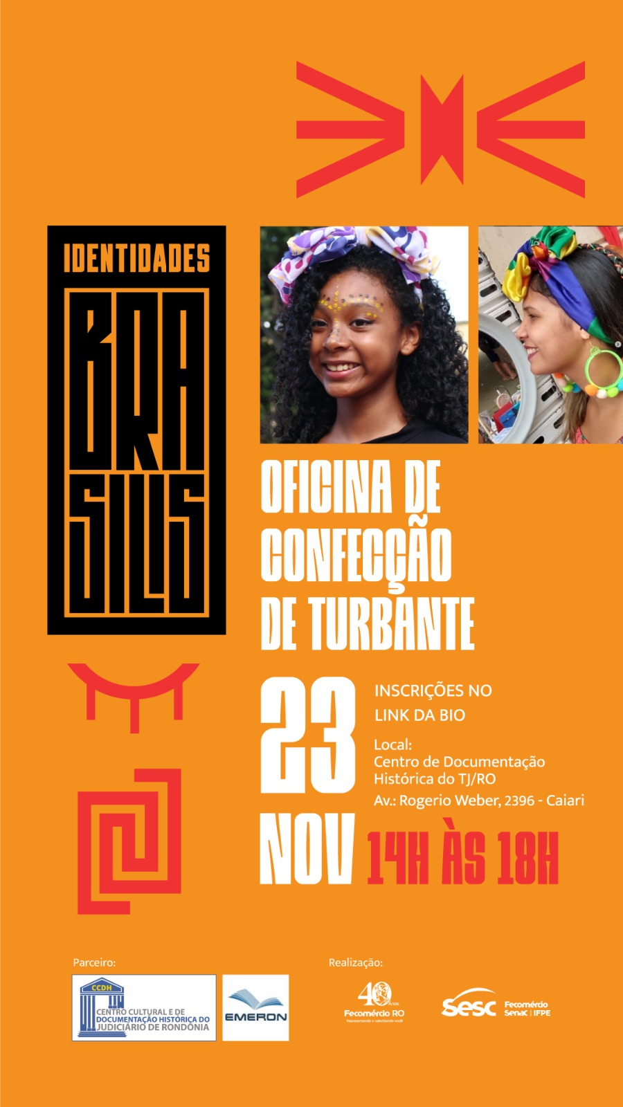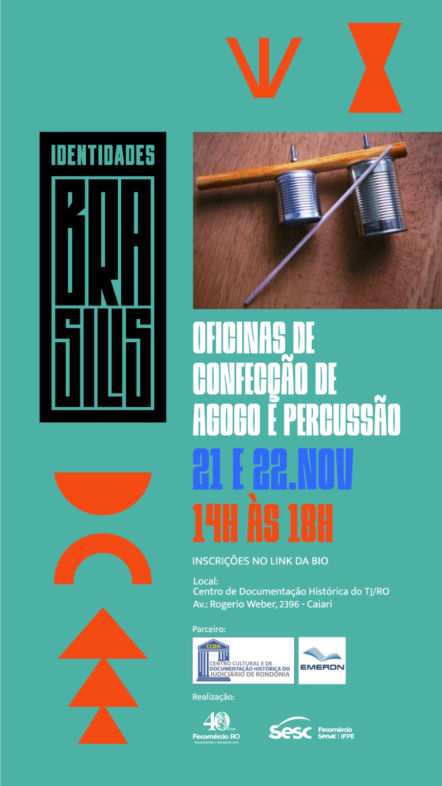 De hoje (20) até o dia 24 de novembro, haverá apresentações, oficinas e palestras relacionadas ao Dia da Consciência Negra. O projeto é realizado em parceria com o Centro Cultural e de Documentação Histórica do Tribunal de Justiça do Estado de Rondônia - CCDH e o Instituto Federal de Rondônia - IFRO.