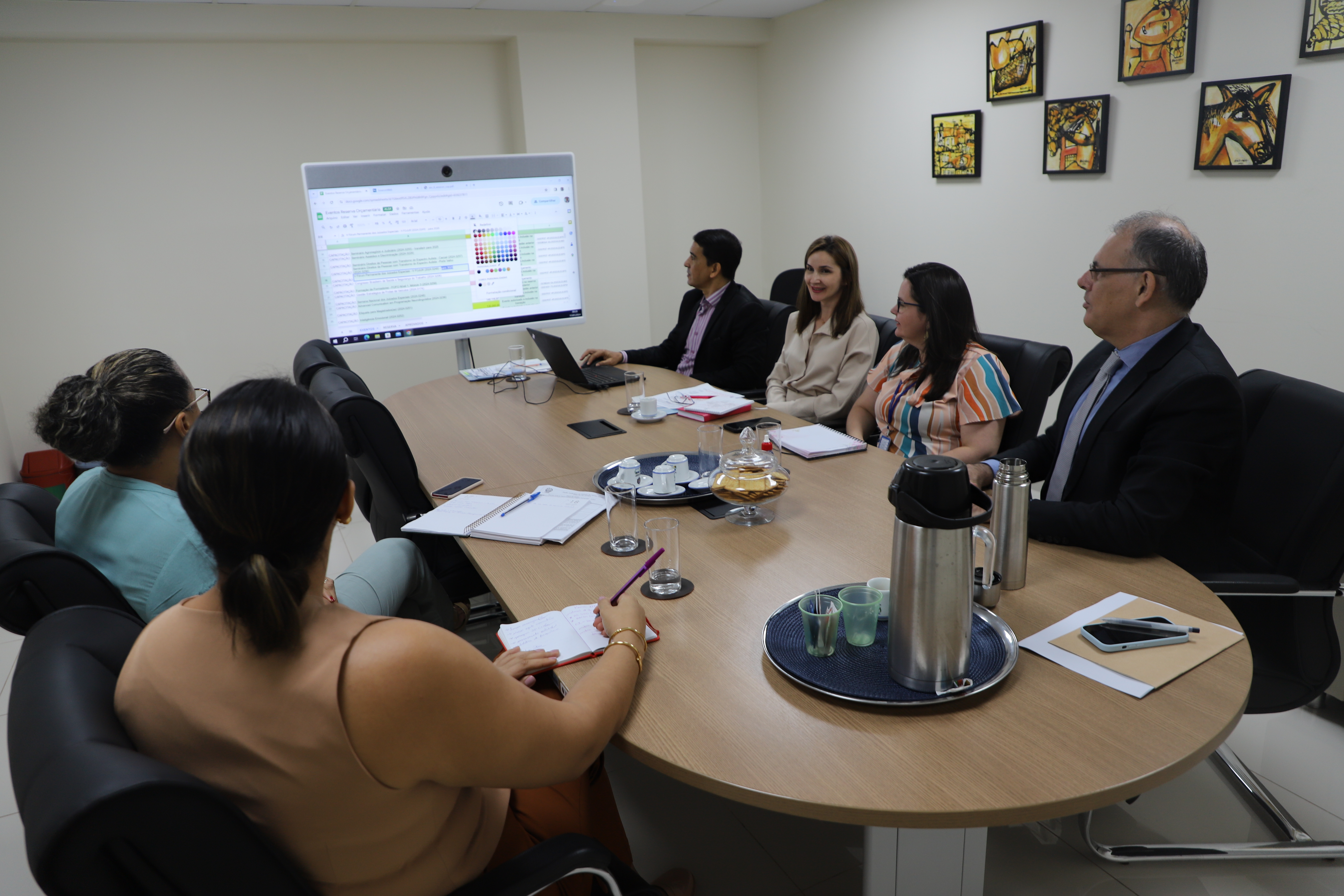 Ainda na quarta-feira, a Direção teve reunião envolvendo a Secretaria-Geral, o Departamento Administrativo (Dead), Departamento Pedagógico (Deped) e Divisão de Planejamento Técnico Pedagógico (Diped). Na ocasião, a equipe revisou o planejamento anual de 2024 para avaliar ações de capacitação que estão na reserva orçamentária, para fins de priorização, especialmente das capacitações de magistrados(as).