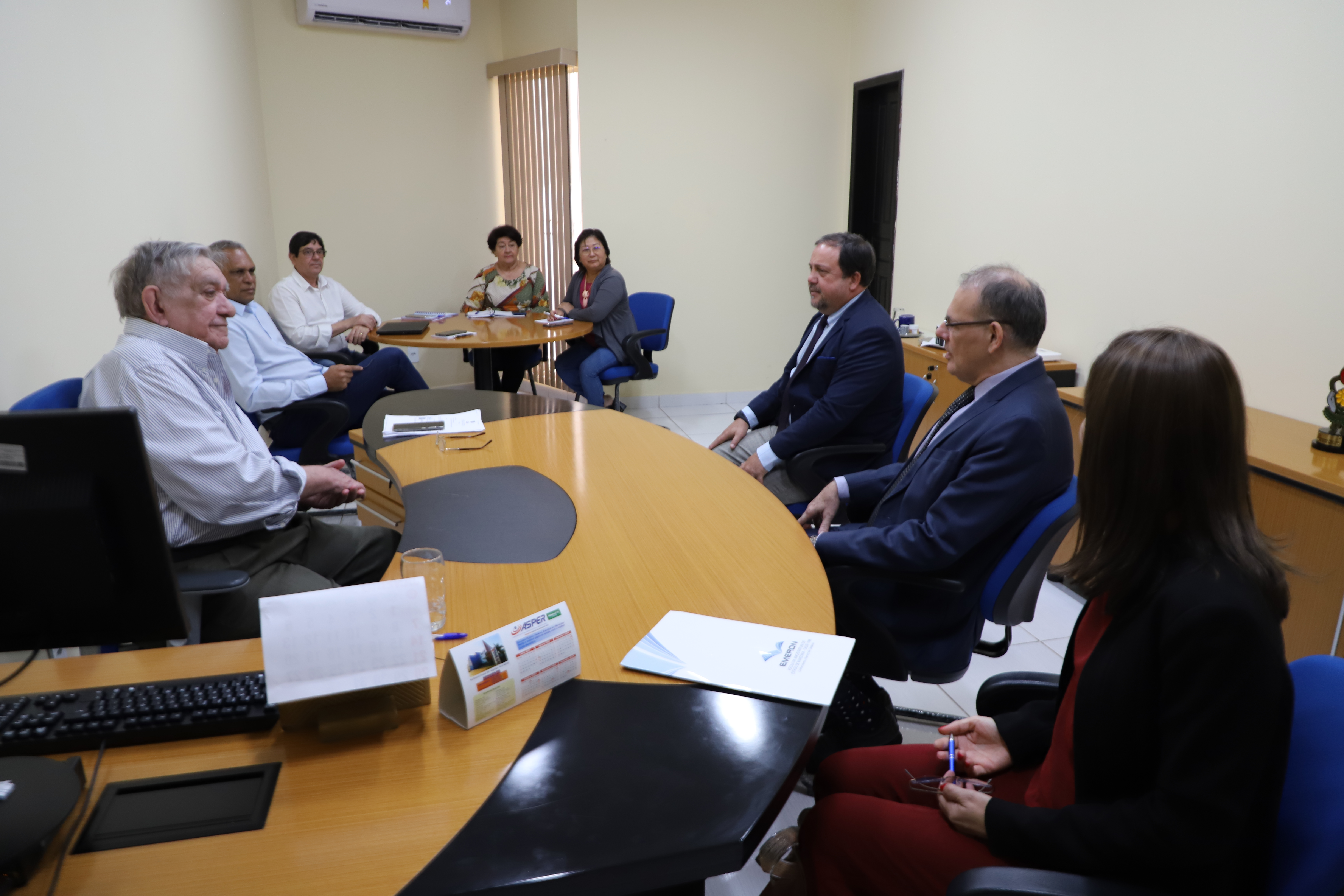 Participaram da reunião o Conselheiro Agenor Fernandes de Souza, a secretária executiva Emilia Yoshimi Iguchi, a gerente técnica Antônia Rodrigues Borges da Silva e o coordenador da Câmara de Educação Profissional e Superior Sidnei Pereira dos Santos. Pela Emeron, também esteve presente a diretora do Departamento Pedagógico (Deped), Marciane Rossi.