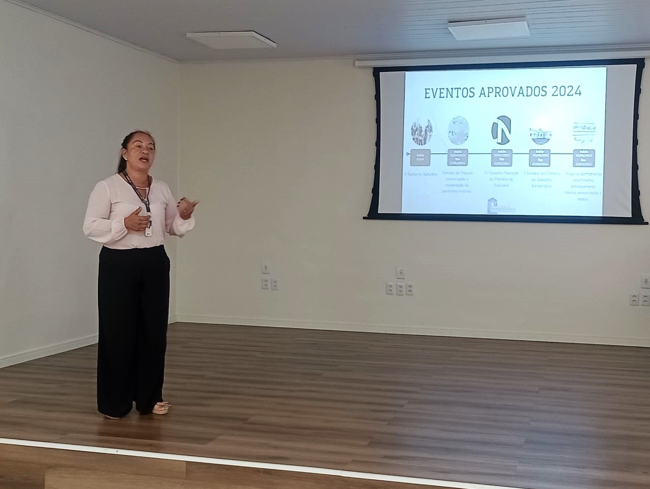 Na ocasião foram apresentadas a data de início de algumas atividades já aprovadas, como “A Escola no Judiciário”, projeto de visita guiada do CCDH que teve início em 2023. O objetivo é despertar o interesse de forma lúdica dos(as) alunos(as) da rede pública pela memória do estado onde moram, para que conheçam os espaços que guardam a história do Judiciário de Rondônia, auxiliando e estimulando-os a descobrirem suas aptidões, e promovendo desta forma o autoconhecimento.
