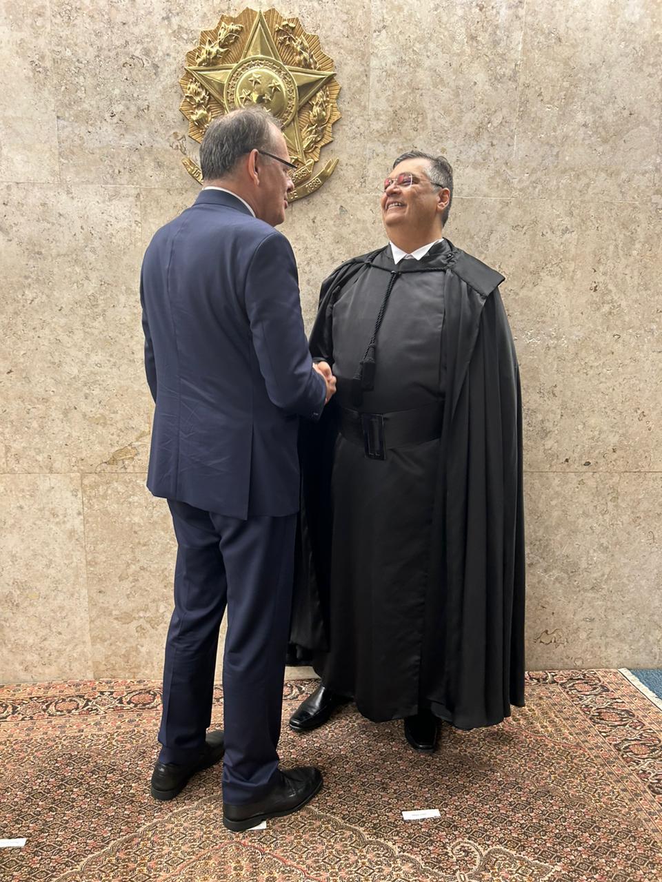 Finalizando a semana em Brasília, o Diretor da Emeron participou, na sede do STF, da cerimônia de posse de Flávio Dino como ministro da Suprema Corte, ocorrida na quinta-feira (22). Após o evento, o desembargador Alexandre cumprimentou o novo ministro e desejou a ele uma boa atuação no Tribunal.