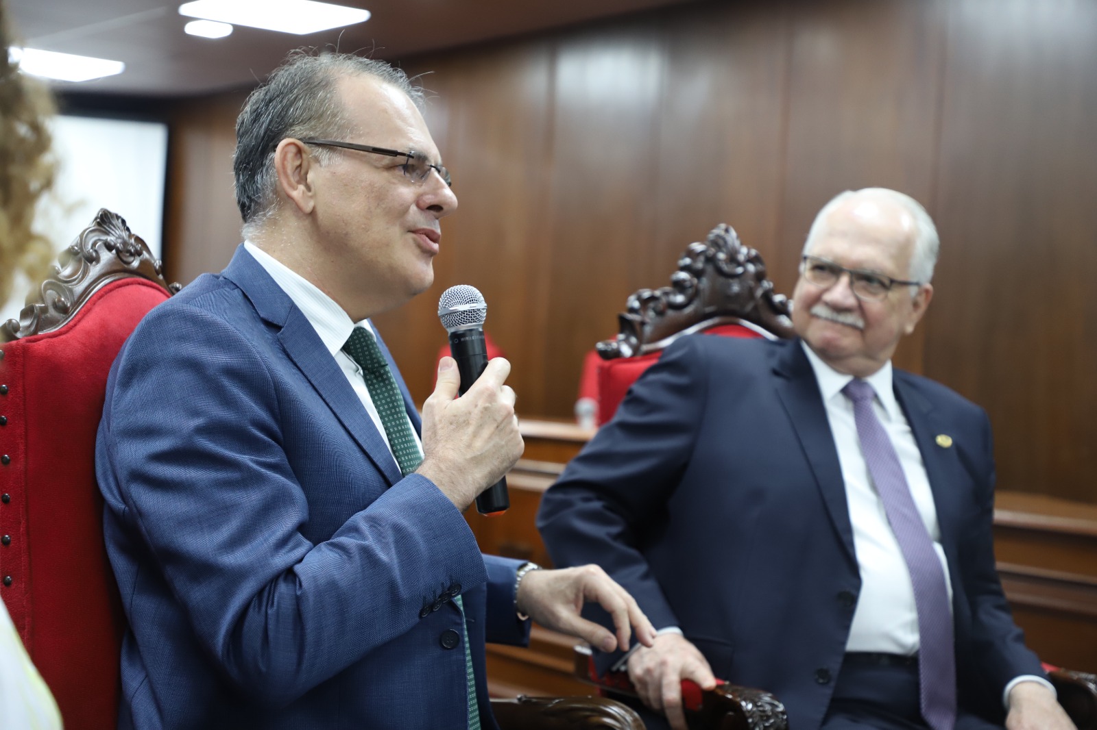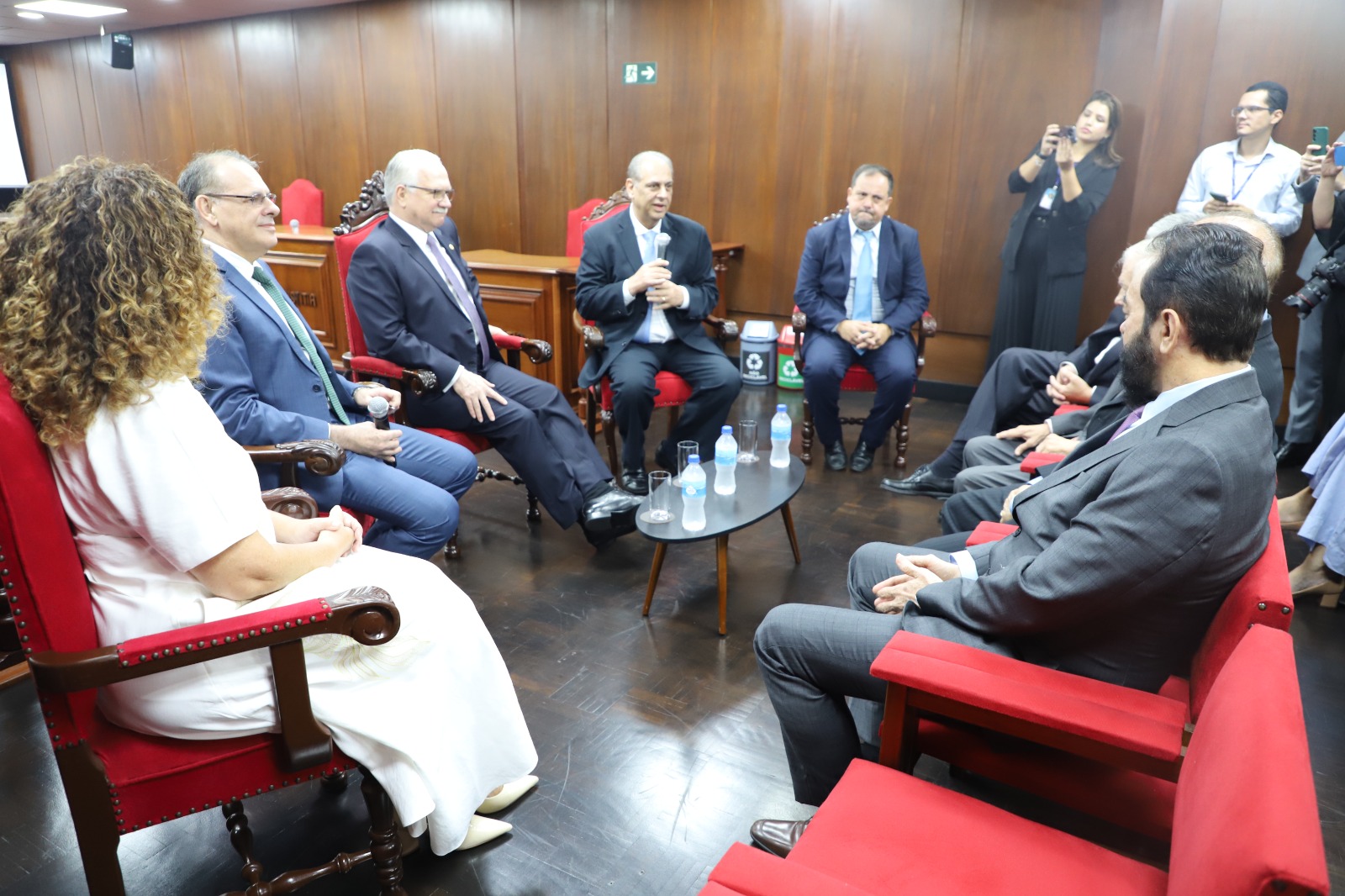 Em seguida, o Ministro se dirigiu ao Pleno Histórico, onde participou de um bate-papo com desembargadores e juízes(as) docentes da Especialização em Direito para a Carreira da Magistratura (EDCM). O tema da conversa foi o futuro do Poder Judiciário.