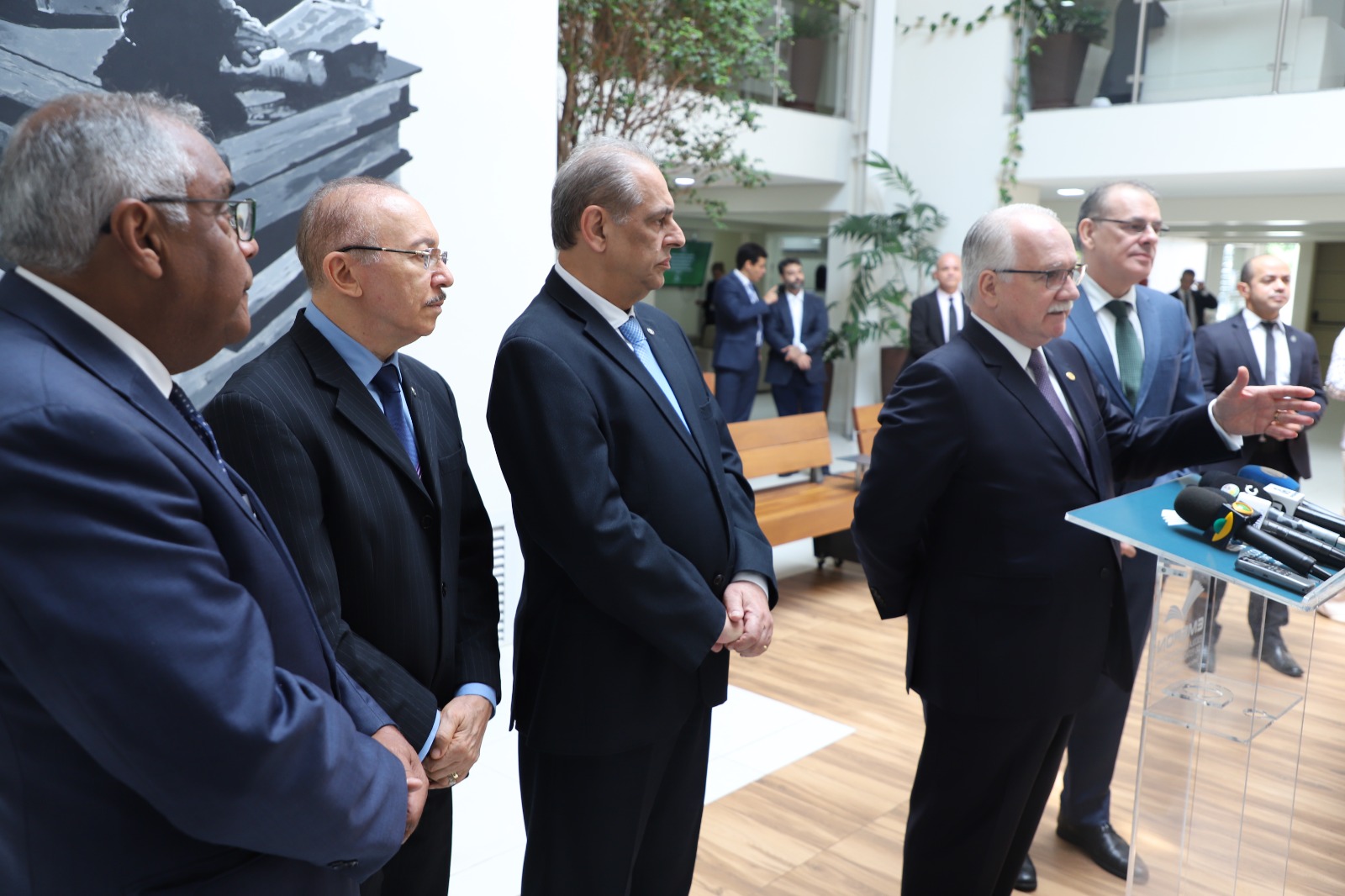 No hall central da Escola, Edson Fachin atendeu aos veículos da imprensa local com uma coletiva. Jornalistas de diversos canais de comunicação fizeram a cobertura da visita. O Ministro falou aos(às) repórteres sobre a importância de unir os campos da universidade e do Poder Judiciário, combinando teoria e prática.