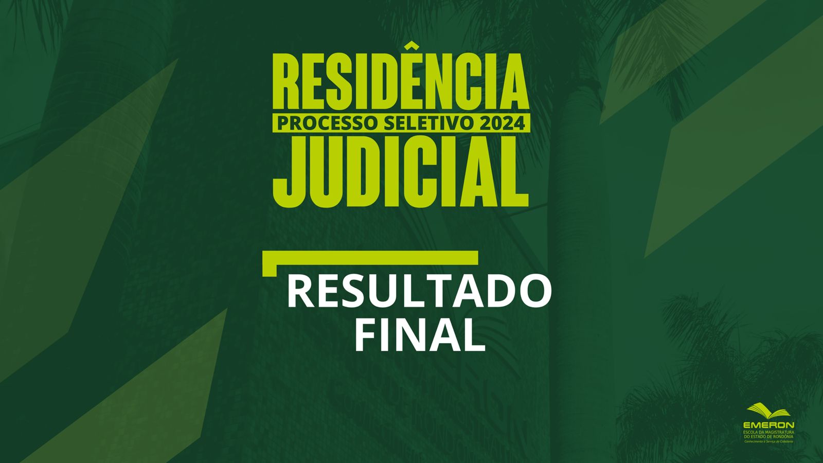 A Escola da Magistratura do Estado de Rondônia (Emeron), em conformidade ao Edital Nº 1/2024-Emeron, divulga o resultado final do processo seletivo do Programa de Residência Judicial, voltado à turma de 2023 do curso de pós-graduação lato sensu Especialização em Direito para a Carreira da Magistratura (EDCM) - Porto Velho e Cacoal.