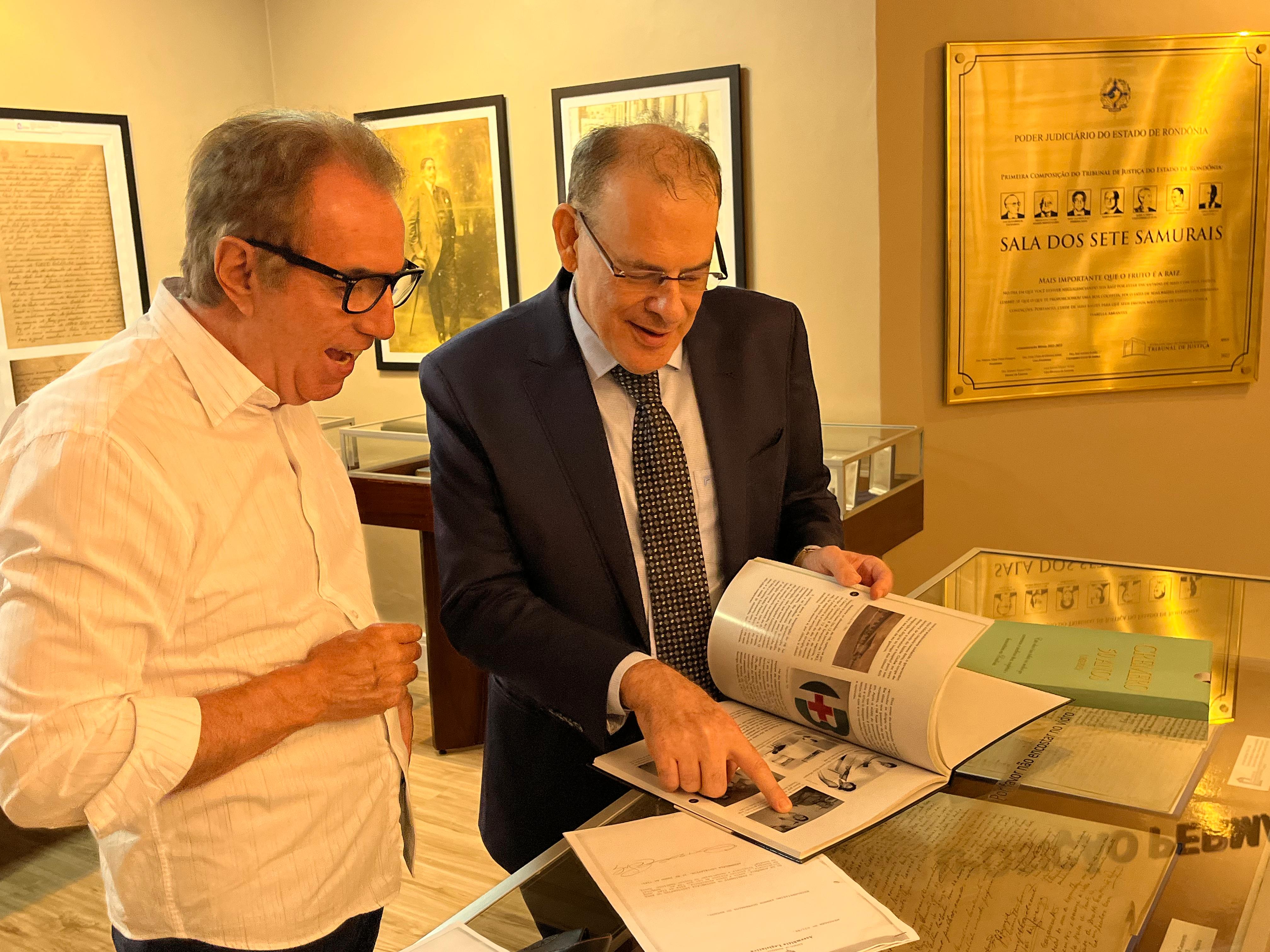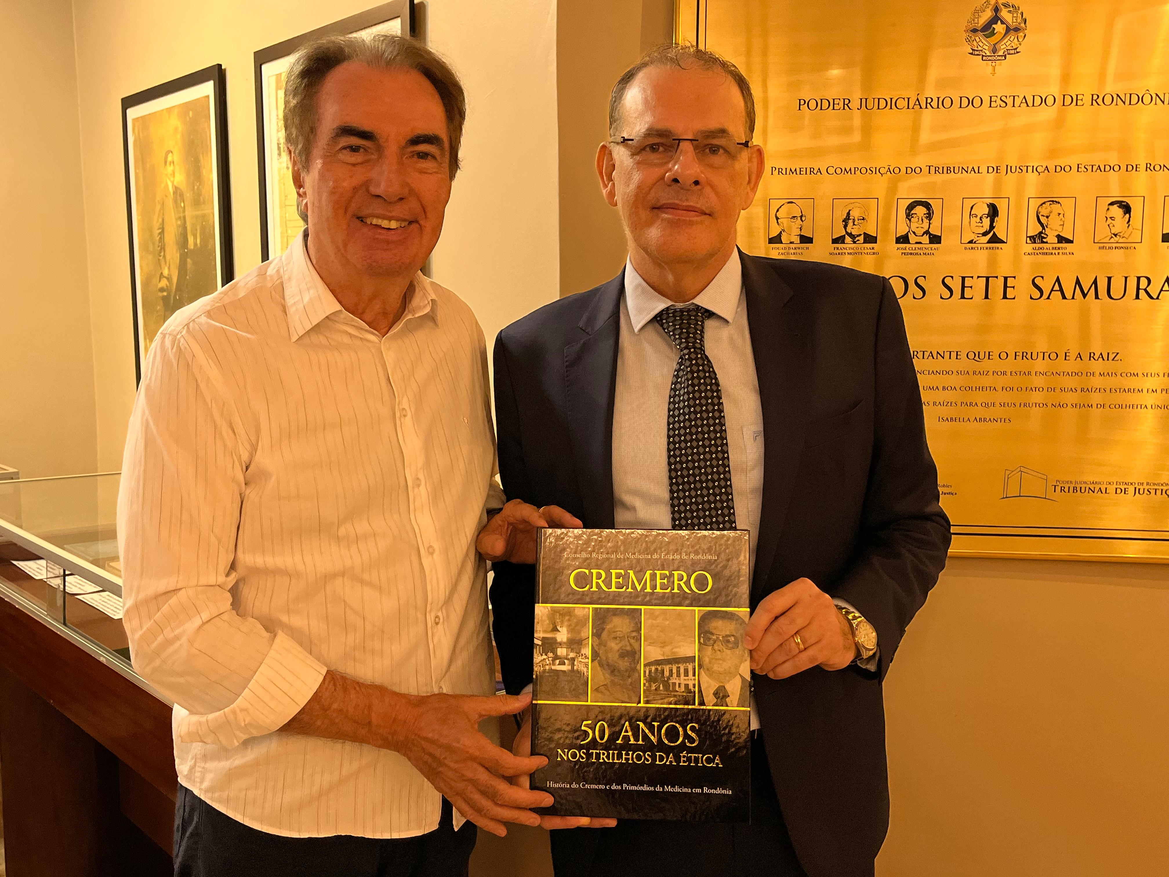 O Centro Cultural e de Documentação Histórica do Judiciário (CCDH), vinculado à Escola da Magistratura do Estado (Emeron), recebeu na última quinta-feira (14) a visita do médico, jornalista e escritor Viriato Moura, membro da Academia Rondoniense de Letras, Ciências e Artes, para a entrega do livro “CREMERO 50 anos nos trilhos da ética”, que foi recebido pelo desembargador Alexandre Miguel, Diretor da Emeron, e a equipe do CCDH.