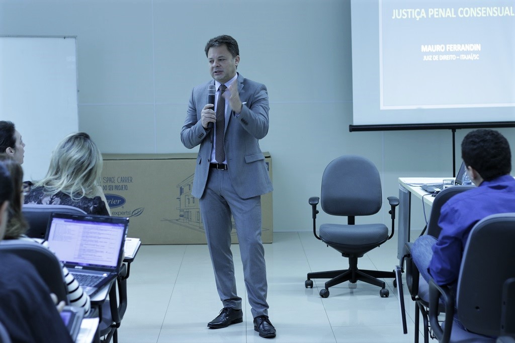 Dando início às atividades do FOJUR na manhã de sexta-feira (06), o juiz do Tribunal de Justiça do Estado de Santa Catarina Mauro Ferrandin ministrou a palestra “Juizados Especiais Criminais: Um modelo de Justiça Penal Consensual”.