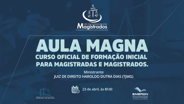 A Escola da Magistratura do Estado de Rondônia (Emeron) realizará nesta terça-feira, 23 de abril, a abertura do Curso Oficial de Formação Inicial para Magistradas e Magistrados provenientes do XX Concurso Público para provimento de Juiz de Direito Substituto do Tribunal de Justiça do Estado de Rondônia (TJRO). O evento terá uma aula magna ministrada pelo juiz Haroldo Dutra Dias, do Tribunal de Justiça de Minas Gerais, e será transmitido ao vivo no YouTube.