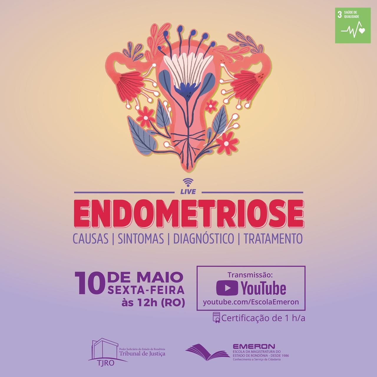 A Escola da Magistratura do Estado de Rondônia (Emeron) realiza nesta sexta-feira, 10 de maio, das 12 às 13h (horário de Rondônia), uma palestra online sobre endometriose, doença inflamatória que afeta milhões de mulheres em todo o mundo. A atividade conta com o apoio da Divisão de Saúde do Tribunal de Justiça de Rondônia (Disau/TJRO) e fornecerá informações essenciais sobre as causas, sintomas, diagnóstico e tratamento da endometriose, além de conscientizar sobre essa questão da saúde feminina.