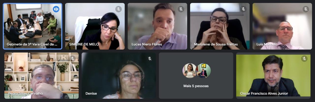 Em seguida, foi realizada uma reunião telepresencial com os juízes(as) professores(as) da EDCM. Atualmente são mais de 25 docentes, de diversas comarcas, que lecionam na pós-graduação lato sensu.