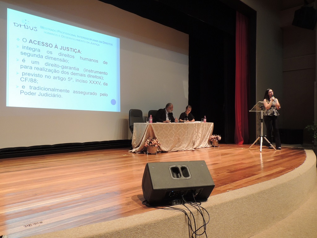 Em continuidade a programação, foi dado início às apresentações das pesquisas realizadas pelos mestrandos do Curso DHJUS. O professor Doutor Delson Fernando Barcellos Xavier, coordenador das apresentações deste primeiro dia, parabenizou os alunos pela dedicação nos estudos e nas pesquisas que seriam demonstradas a seguir. “Esse evento é muito importante para a comunidade, em especial à comunidade jurídica pois materializa o princípio da transparência e da eficiência ao mostrar à sociedade o produto do nosso projeto”, finalizou Delson.